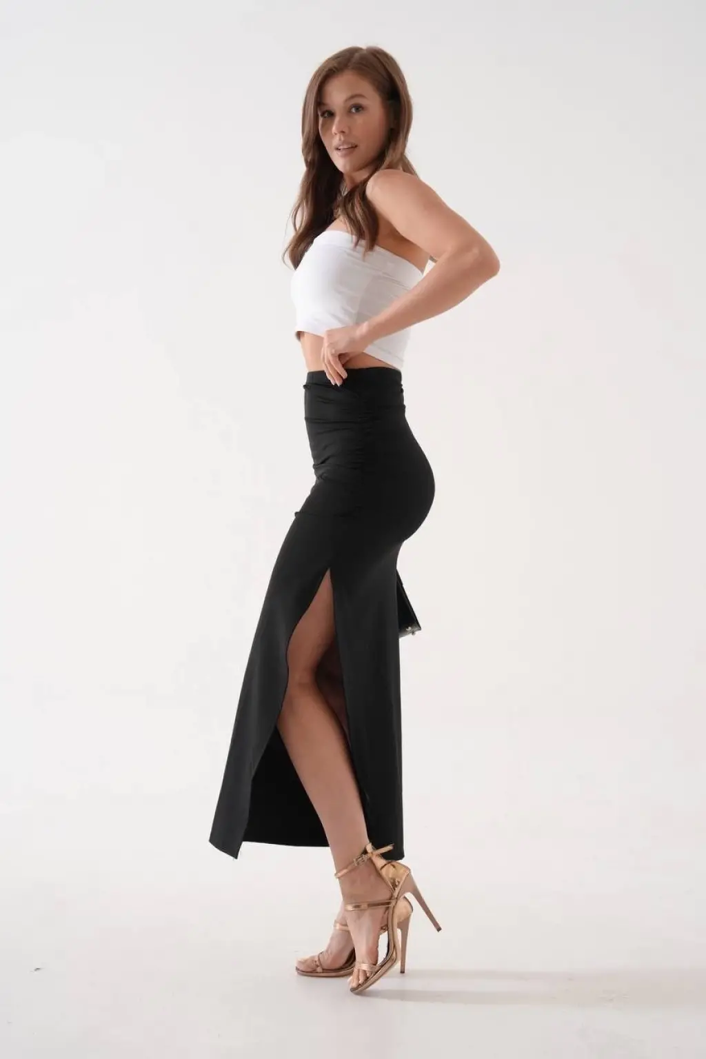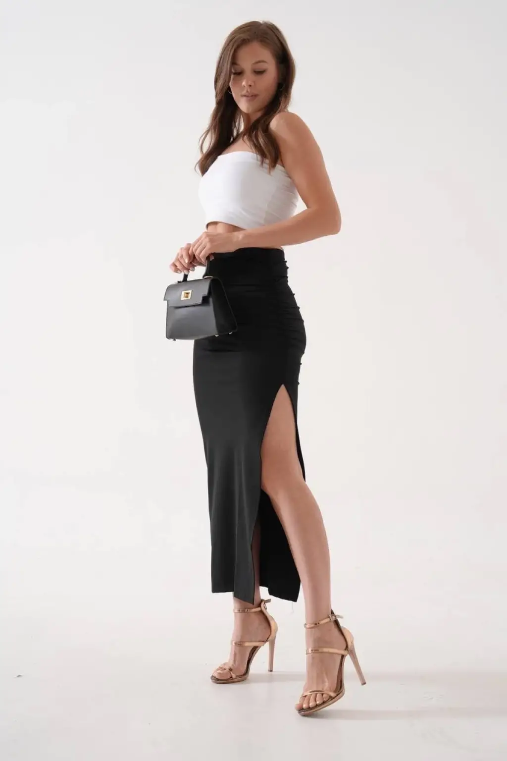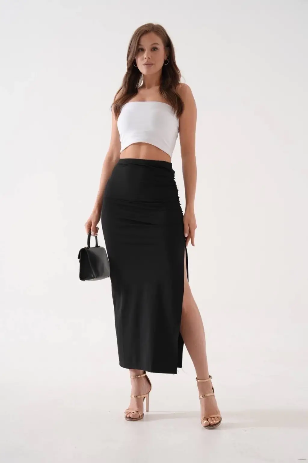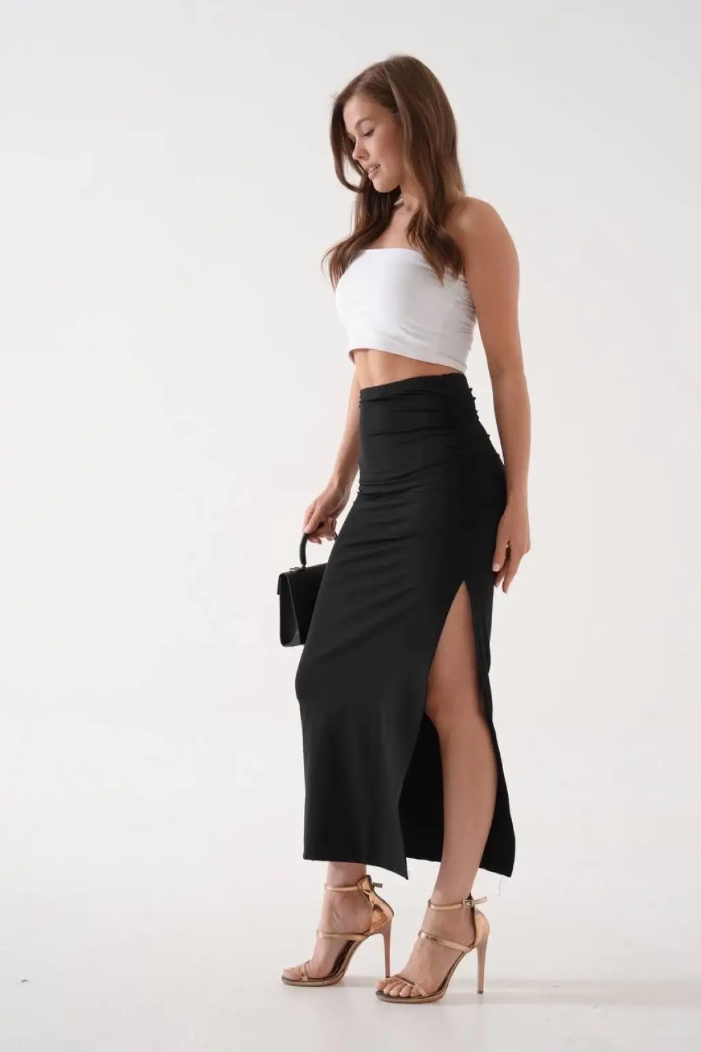 Bu şık ve zarif uzun yırtmaçlı ince kumaş etek siyah rengi ile şıklığınıza şıklık katacak. İnce kumaşı sayesinde rahatlıkla hareket edebilir, gün boyu konforlu bir şekilde kullanabilirsiniz.