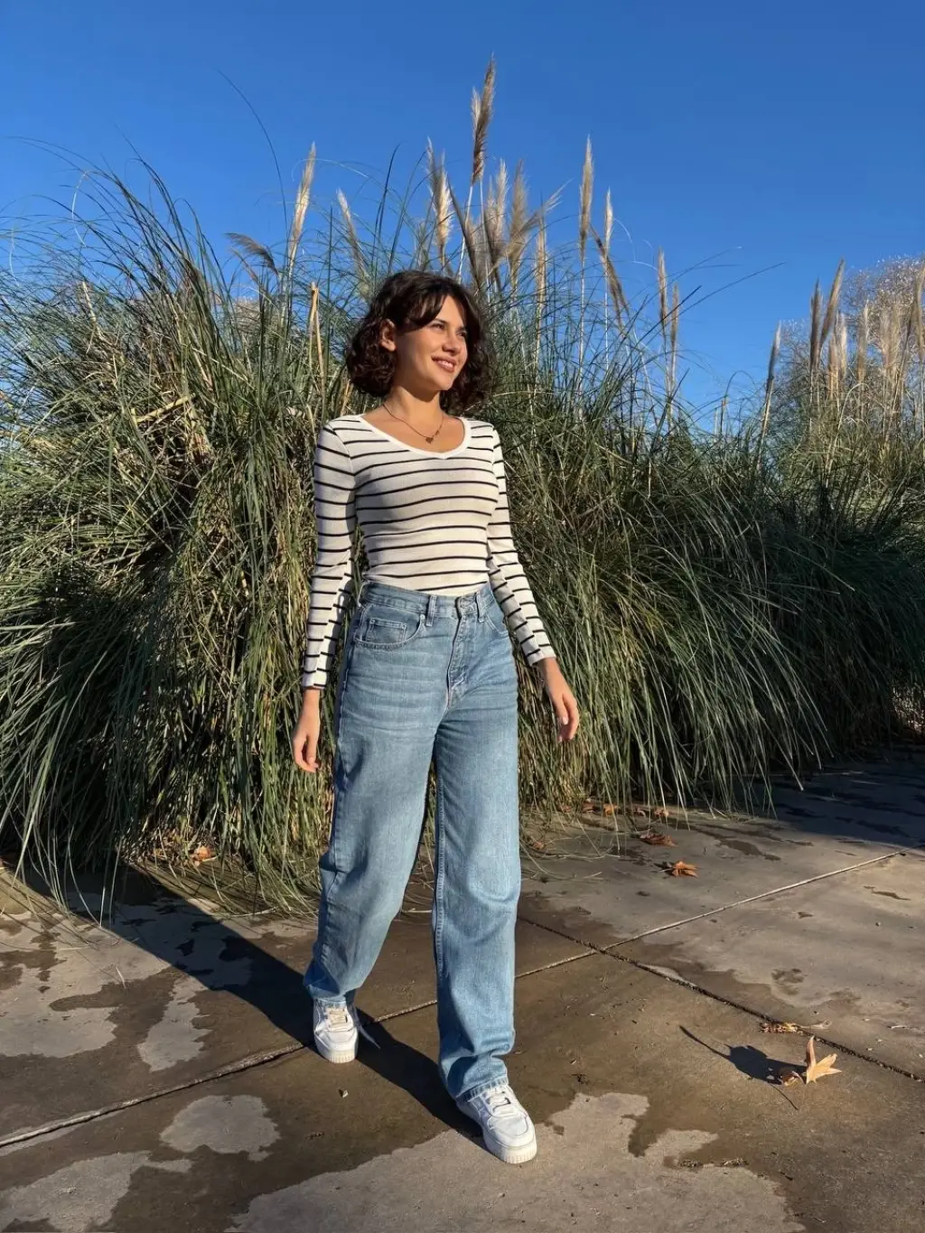 Kadın bluz modasının öncüsü olmaya aday olan beyaz V yaka çizgili bluzu hemen sepetinize ekleyin!
