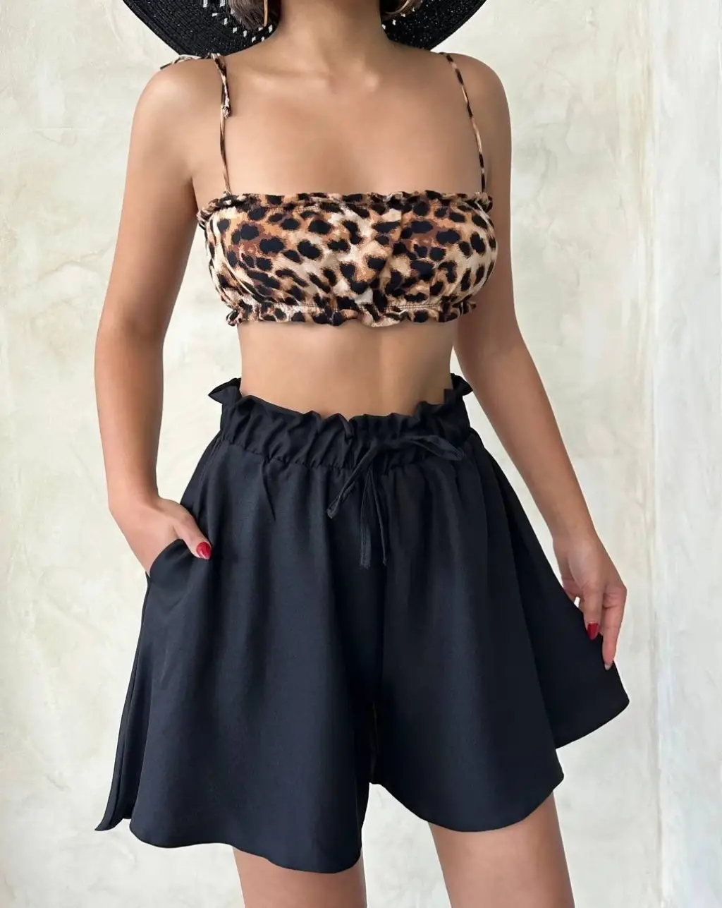 Omuz kısmında yer alan volan detayı ise şortu farklı kılarak tarzını ön plana çıkarır.