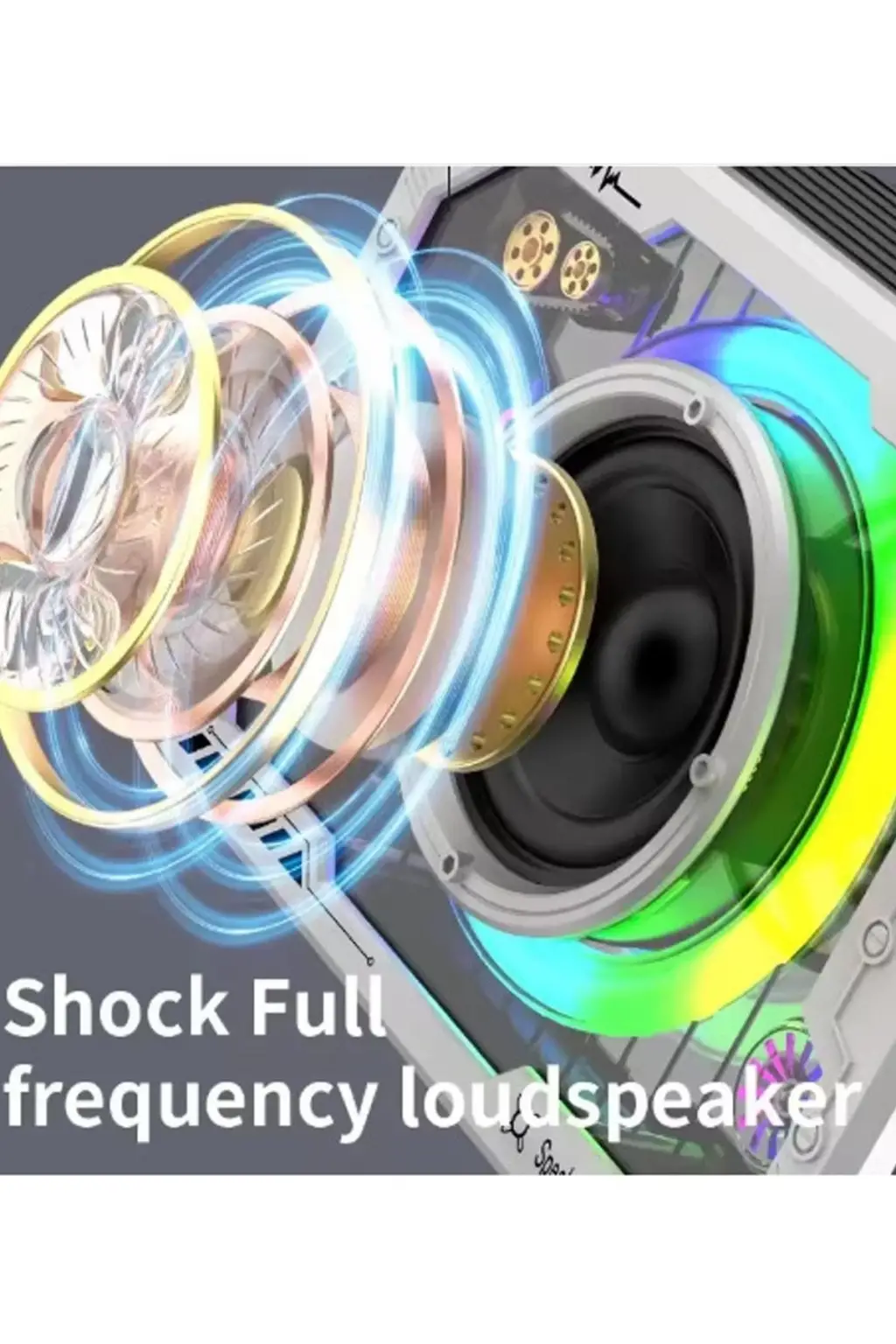 Karaoke Kablosuz Hoparlör Mikrofonlu Rgb Işıklı Bluetooth Speaker Tf Kart/usb Beyaz