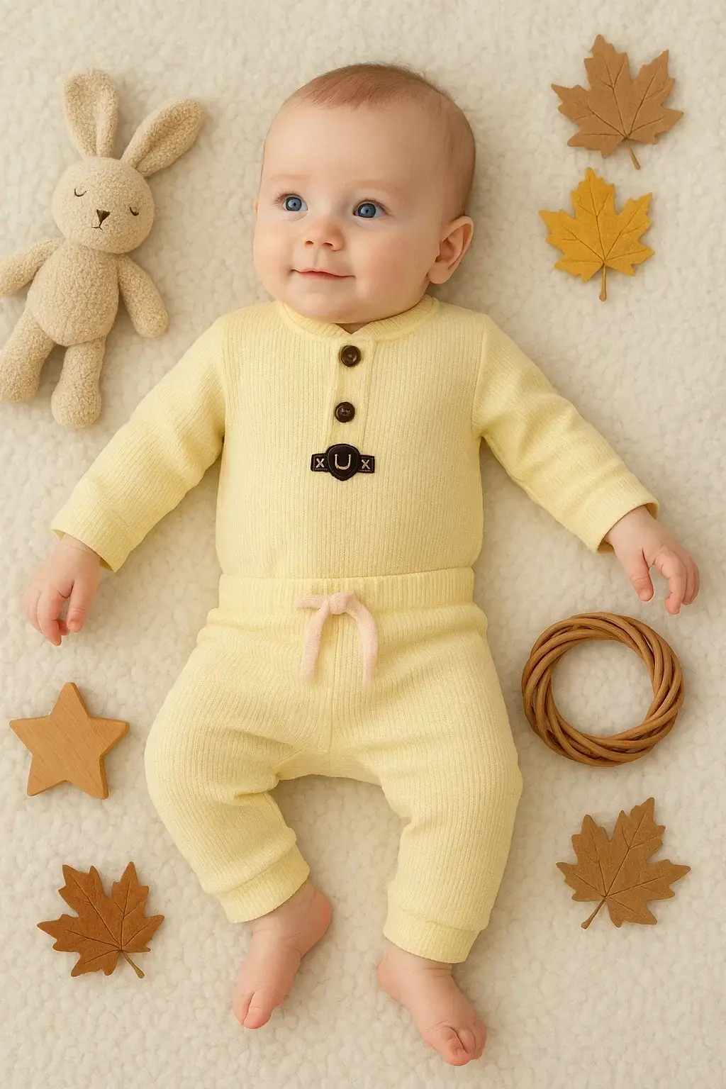 Waffle Çıtlı Düğmeli 2'li Mevsimlik Takım