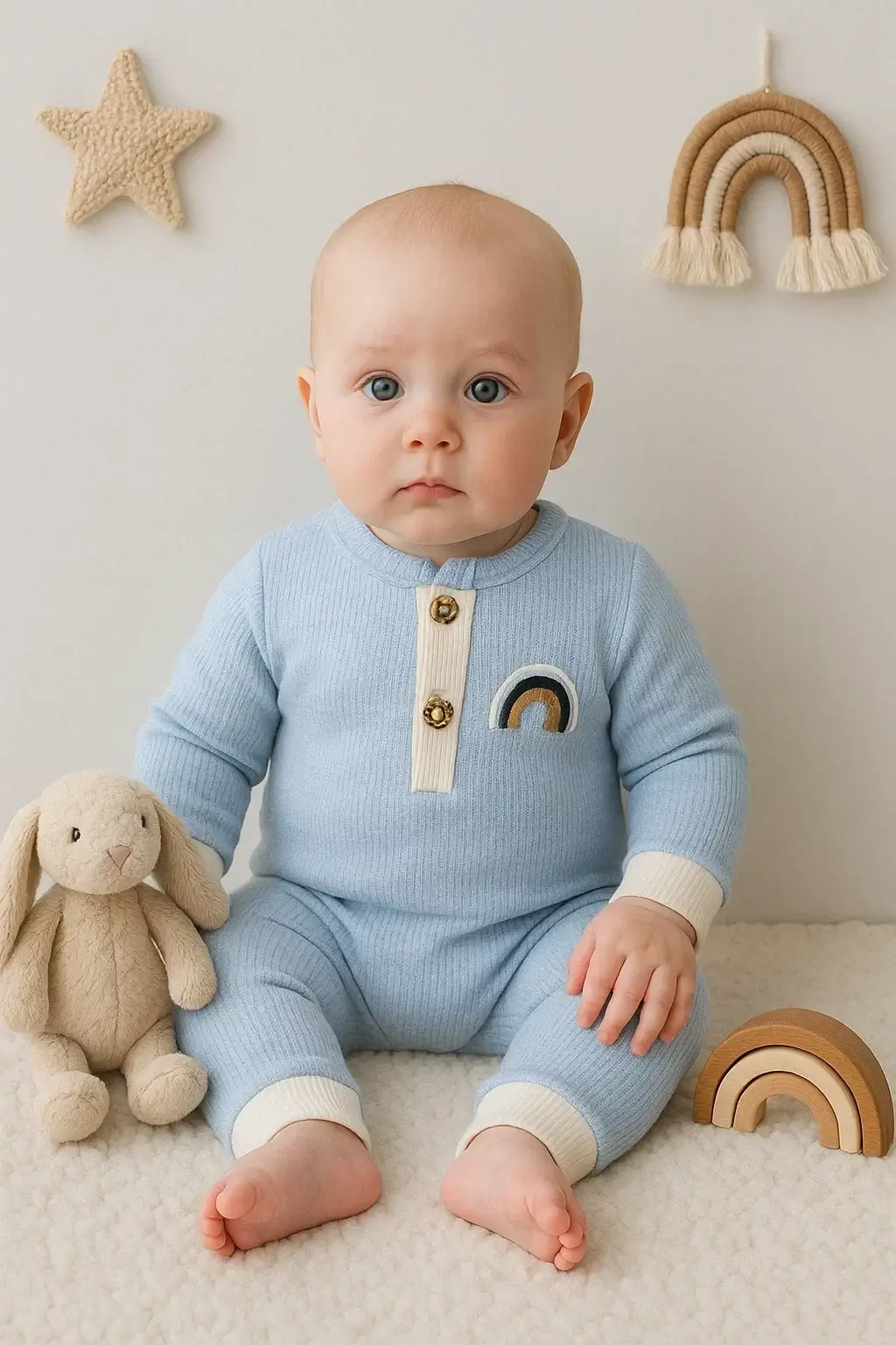 Waffle Gökkuşağı Nakışlı Erkek Bebek Tulumu
