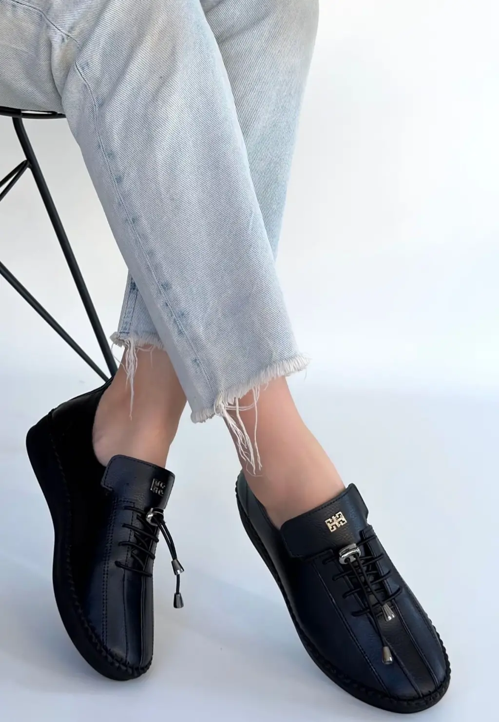 Warte Siyah Deri Bağcıklı Spor Ayakkabı