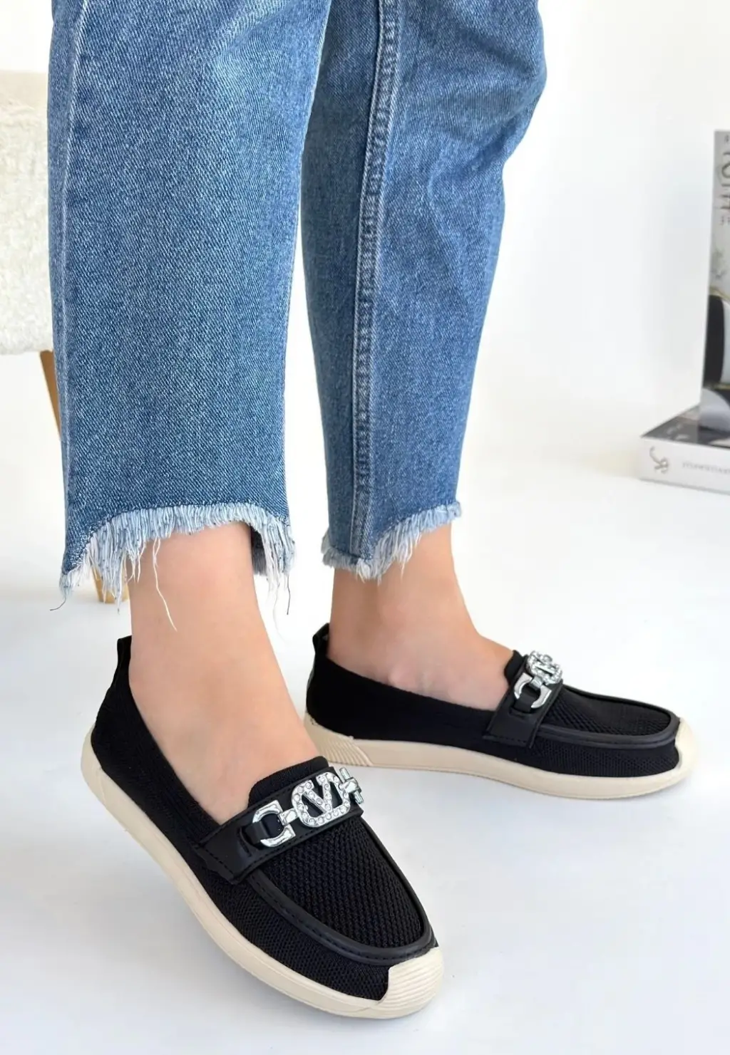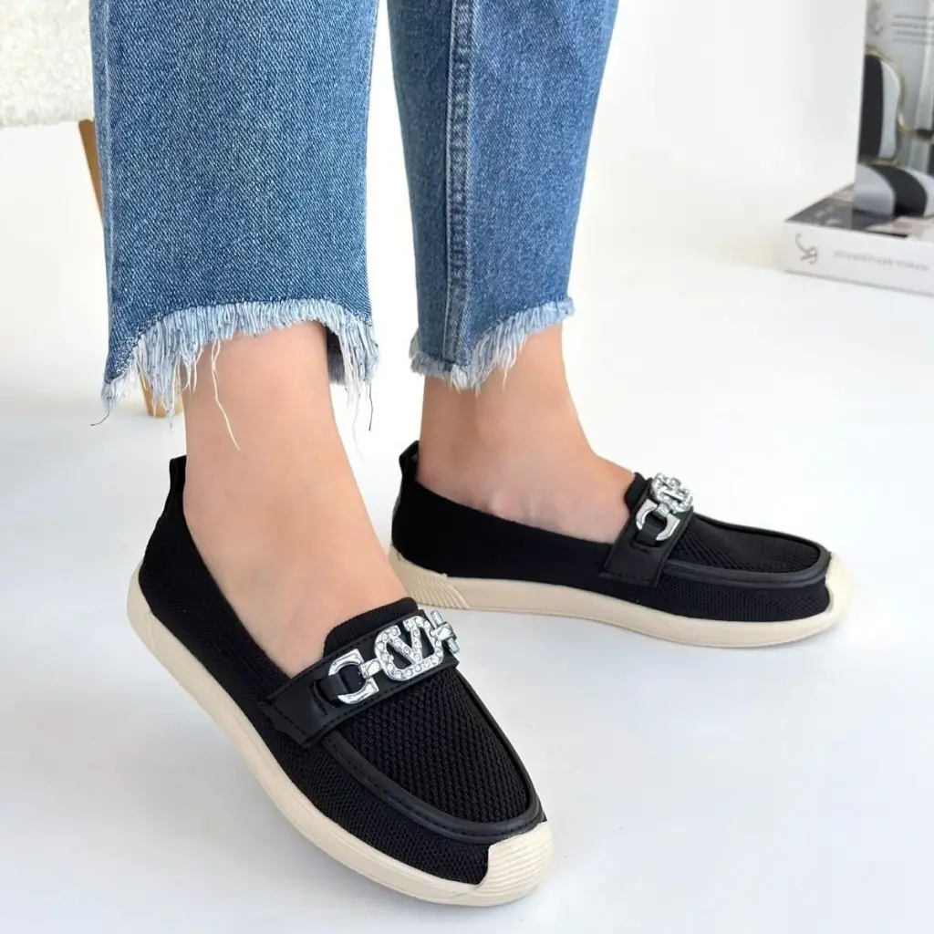 Zarif Siyah Triko Babet Ayakkabı