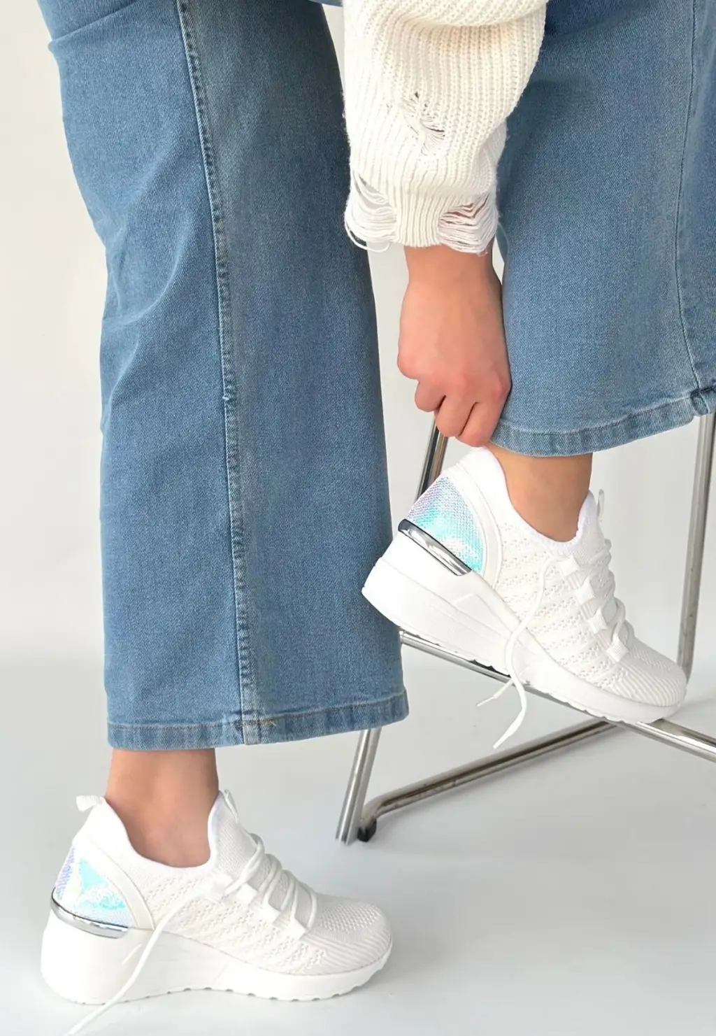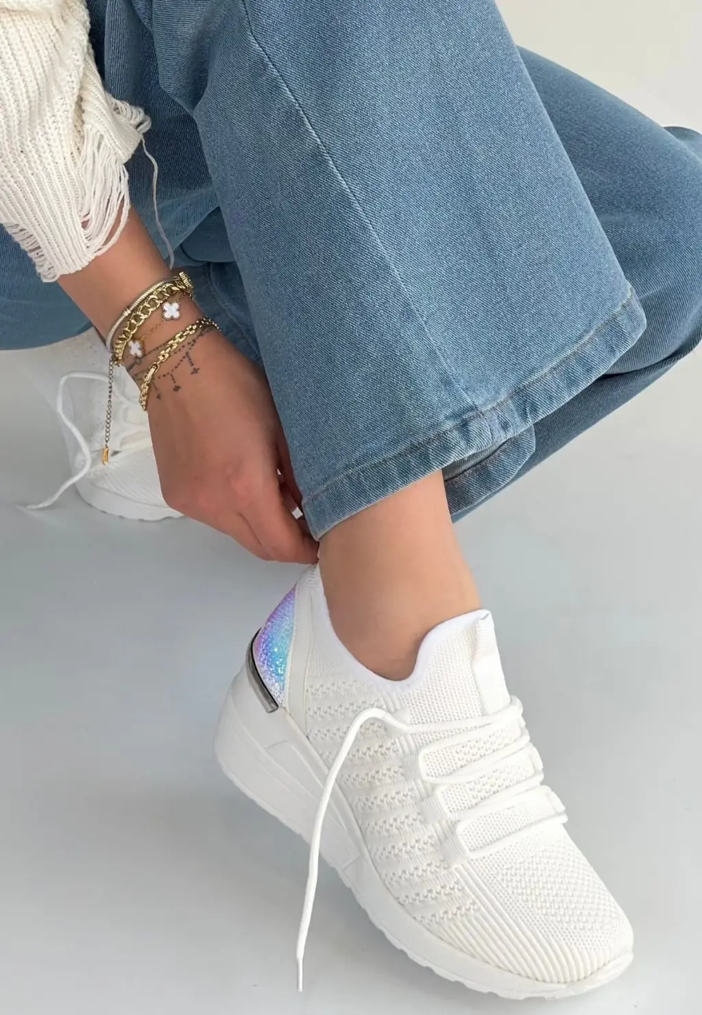 Weor Beyaz Triko Bağcıklı Spor Ayakkabı