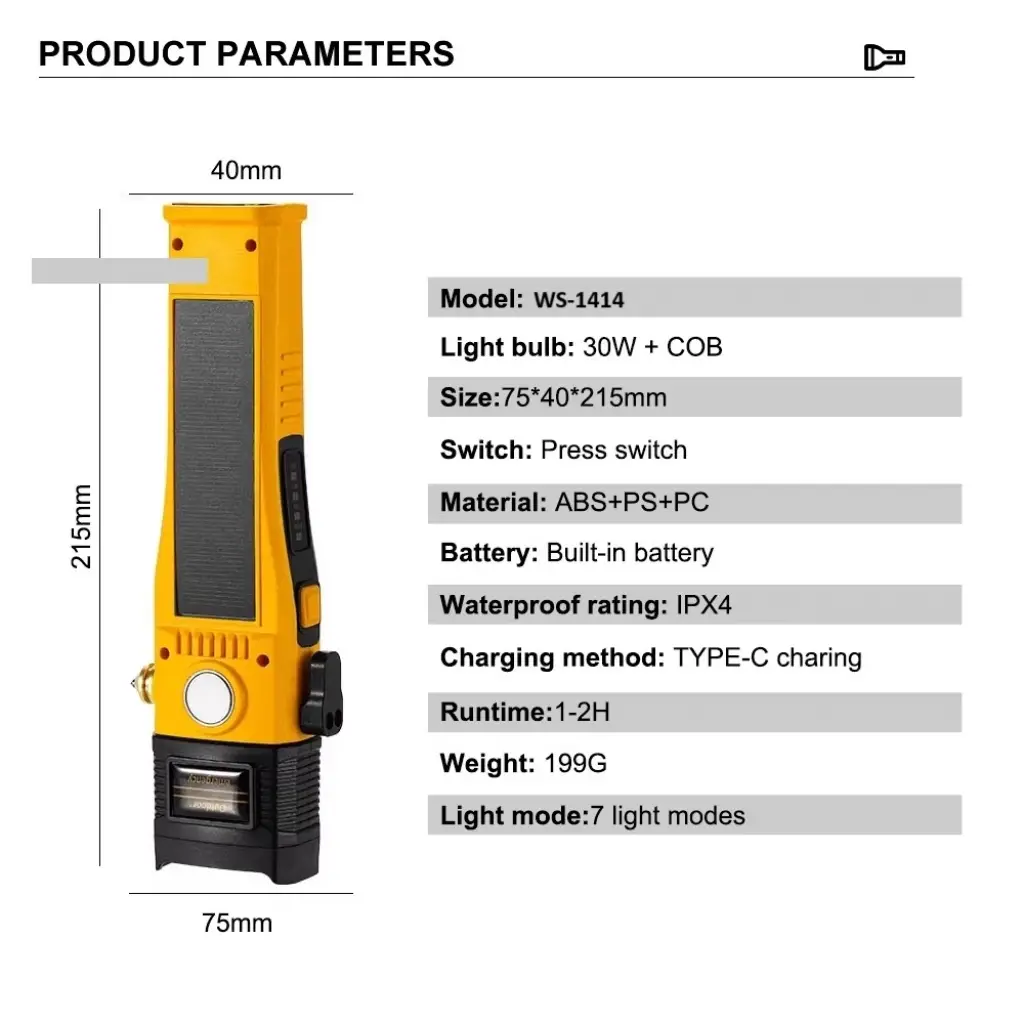 Wison Ws-1414 Cam Kıracaklı Dijital Göstergeli Mıknatıslı Şarjlı Acil Durum Tamirci Feneri