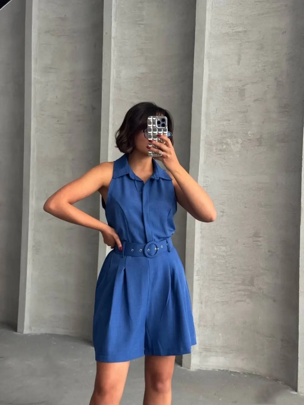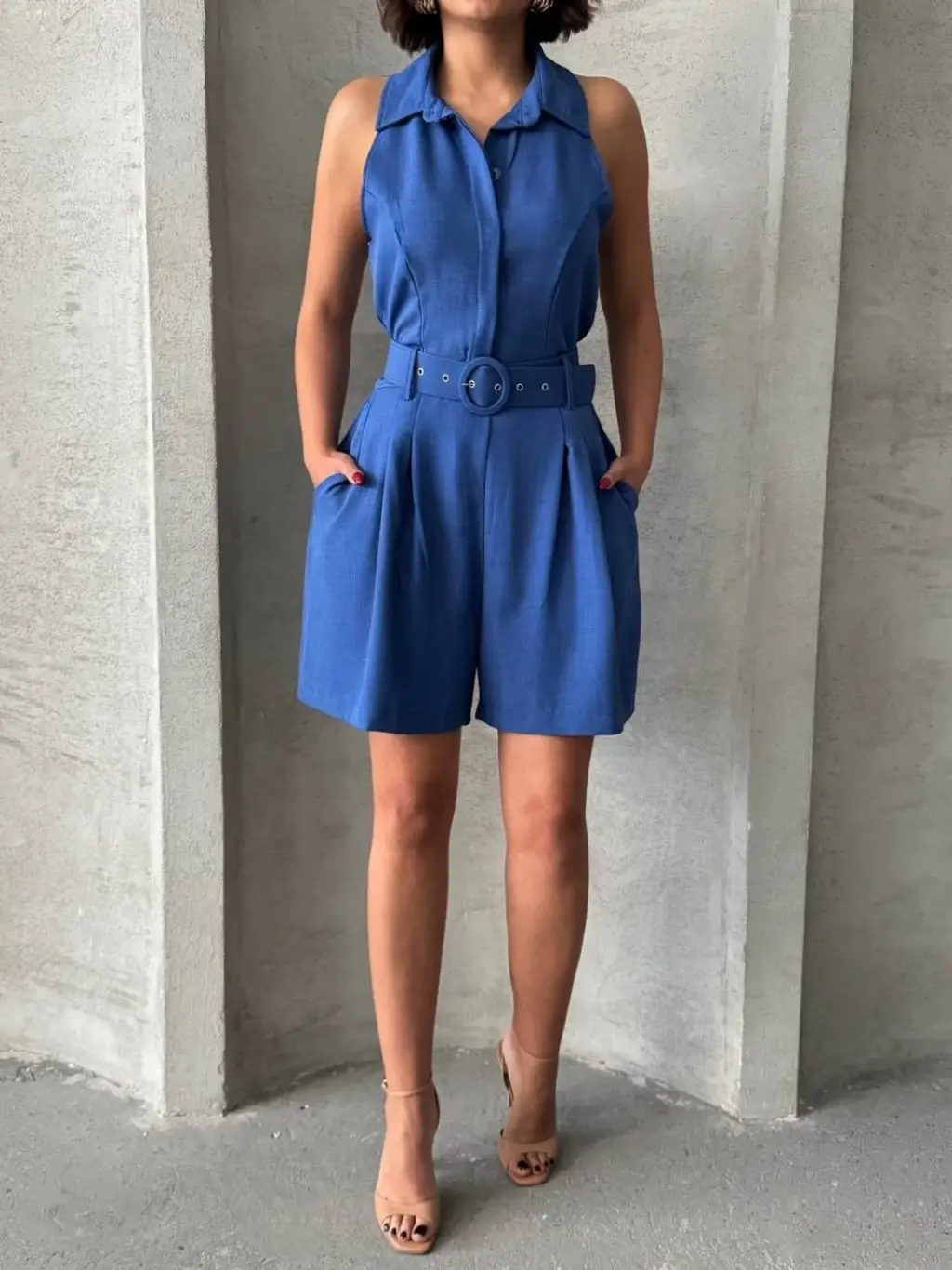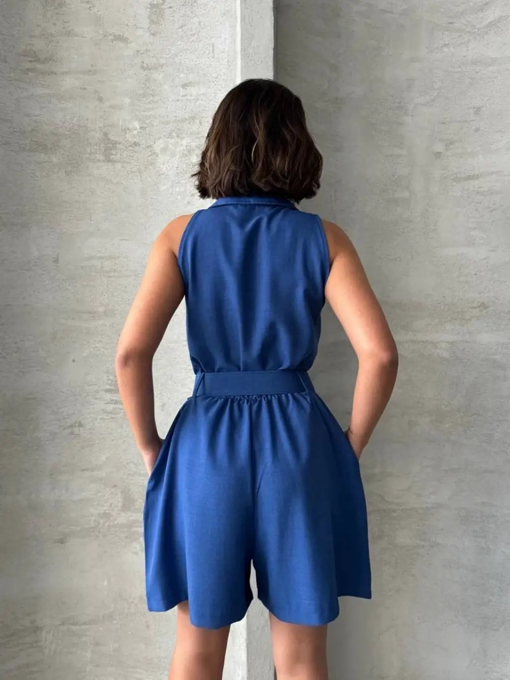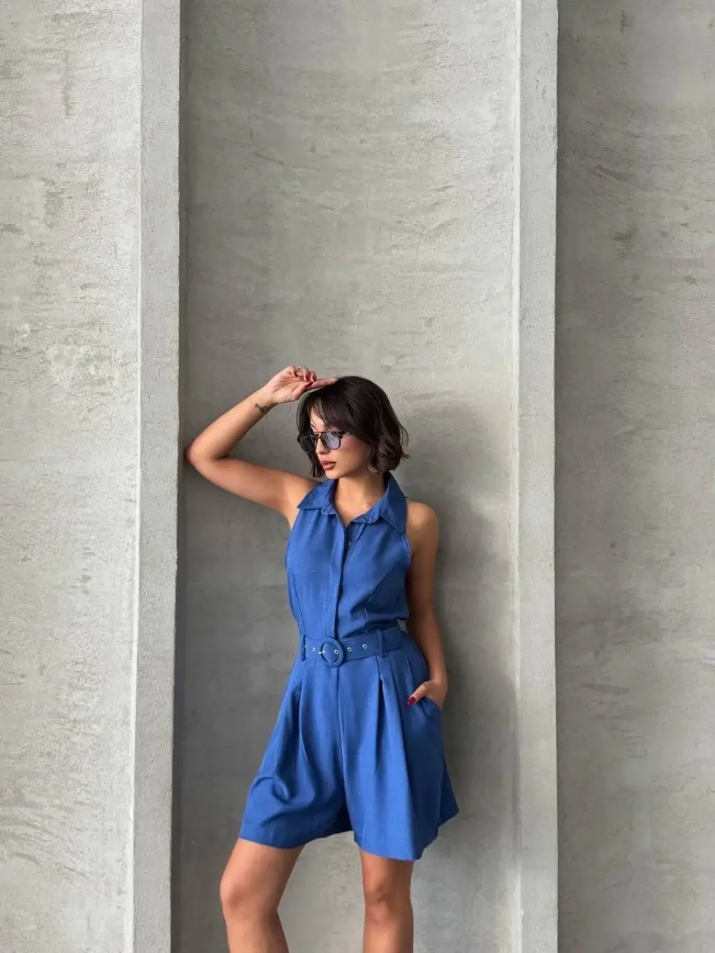 Yakalı tasarımıyla feminen bir hava katarken, şort kesimiyle hareket özgürlüğü sunar.