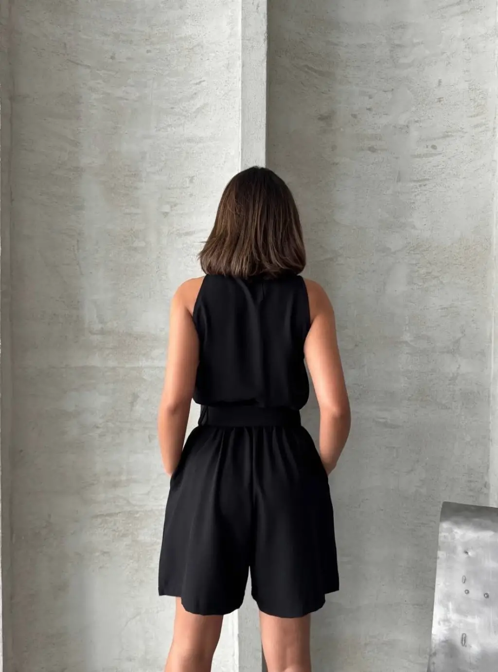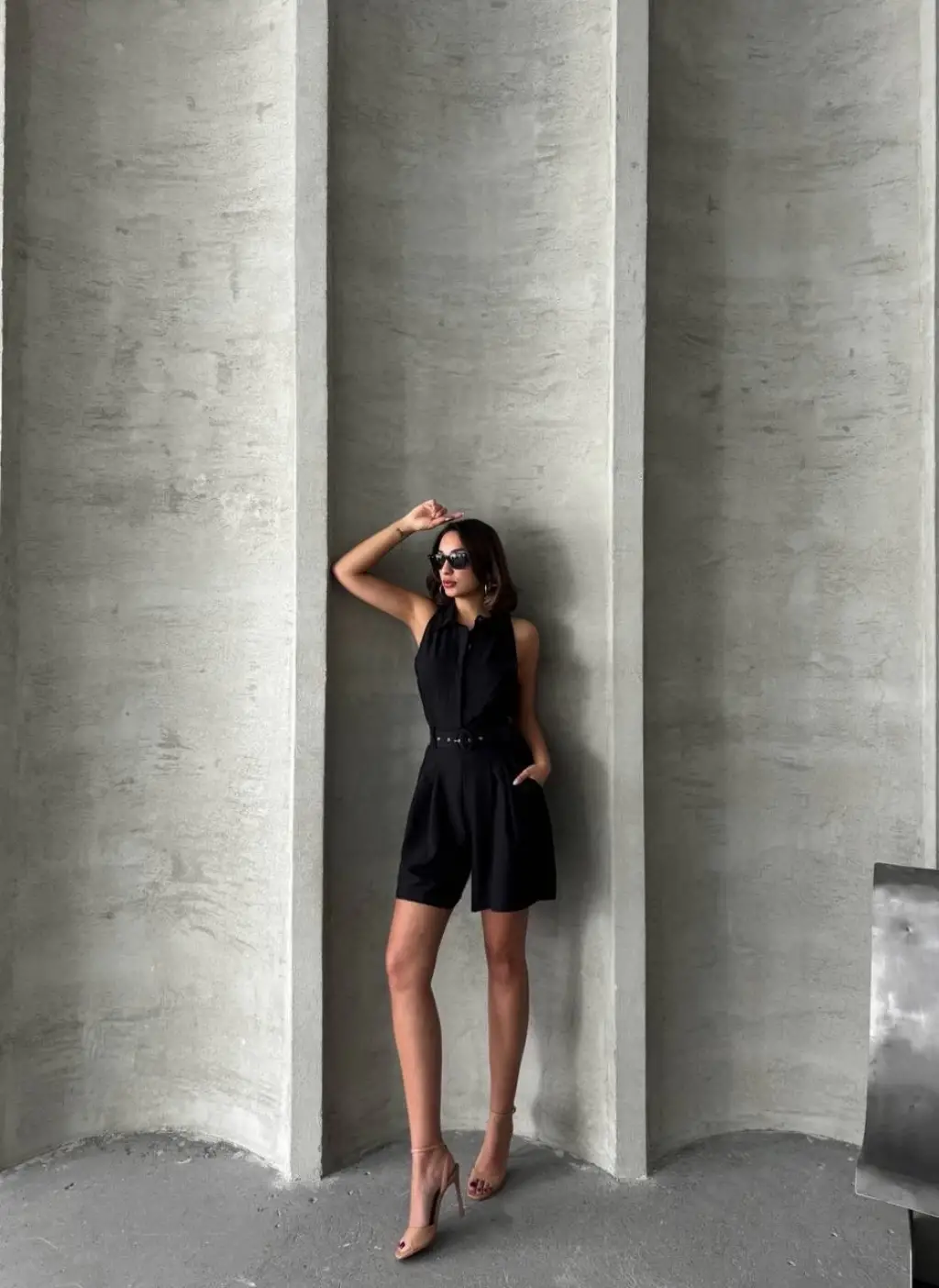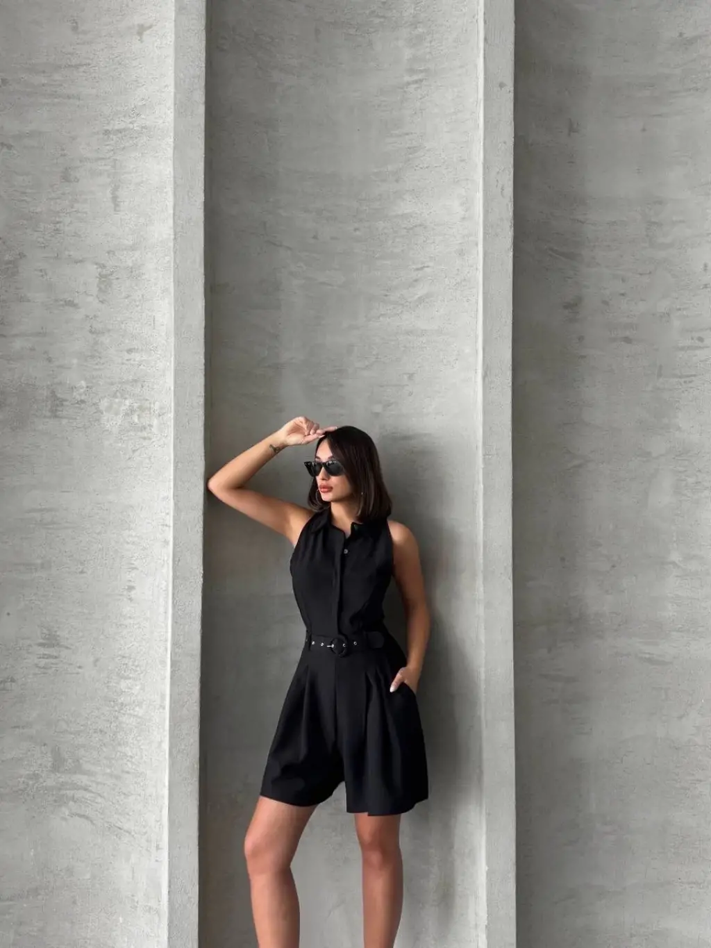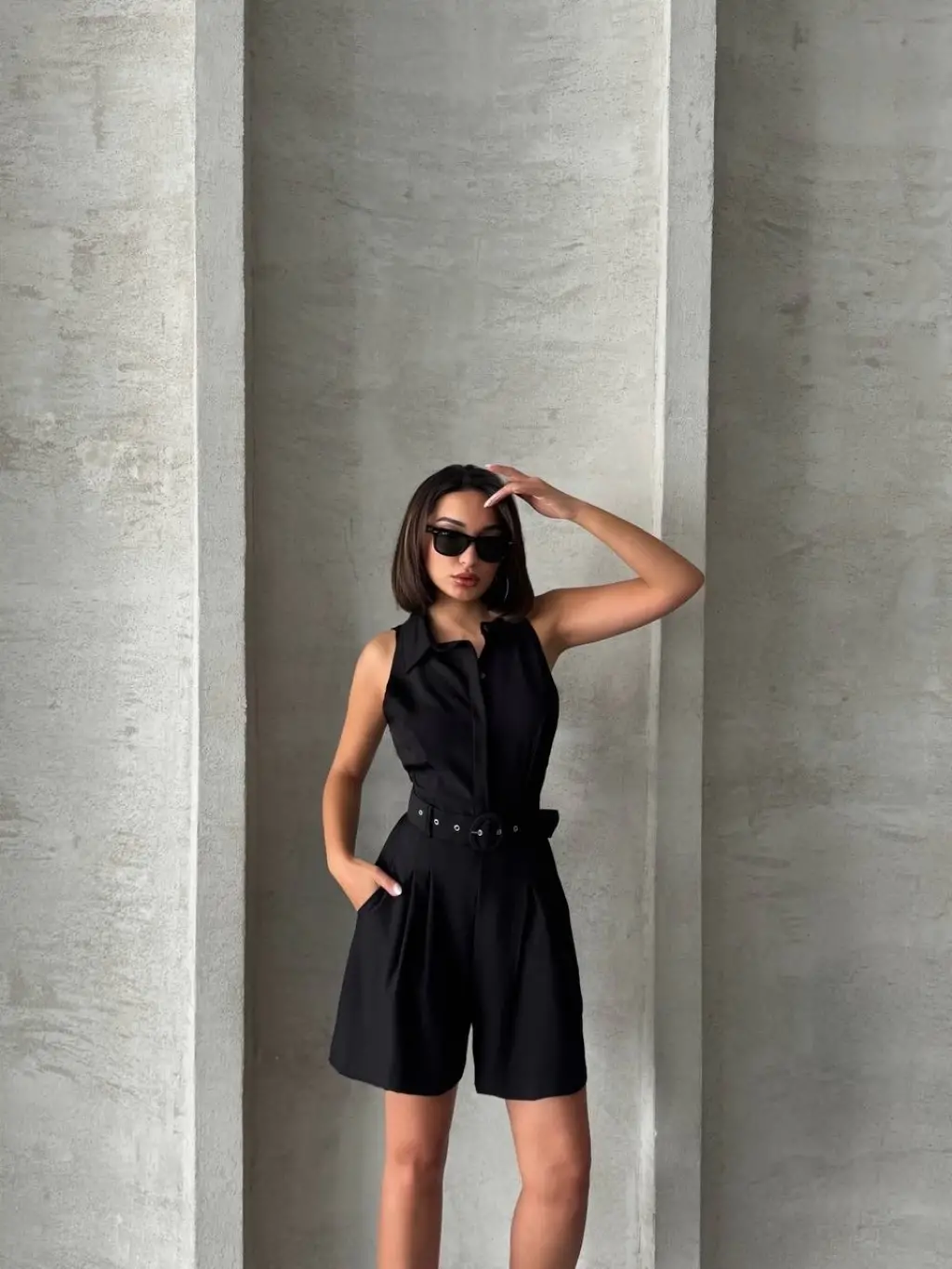 Yakalı tasarımıyla feminen bir hava katarken, şort kesimiyle hareket özgürlüğü sunar.
