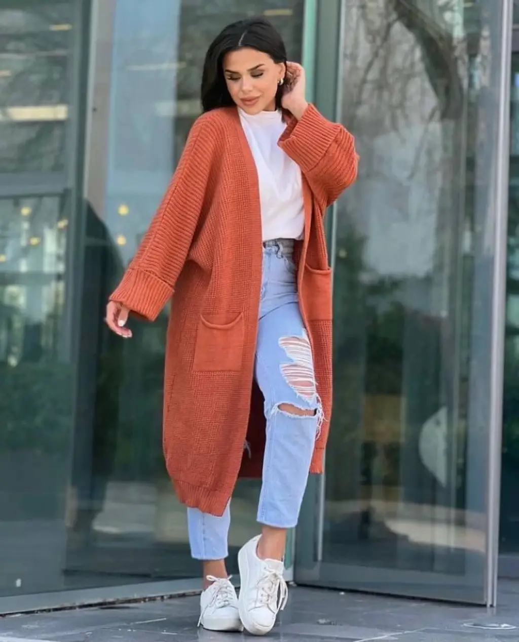 Triko Hırka Kremit, kombinlerinize kolayca uyum sağlayarak şıklığınızı tamamlar. Günlük kullanımdan özel günlerdeki kombinlere kadar geniş bir kullanım alanına sahiptir.