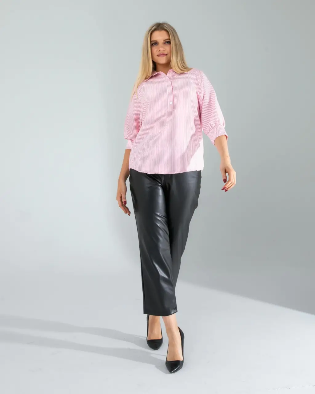 Gardırobunuzun vazgeçilmez parçası olacak! Yumuşak pamuklu kumaşı ve şık çizgili deseni ile hem rahat hem de şık bir görünüm sunar. Yarım düğmeli tasarımı sayesinde kolayca giyilip çıkarılabilir ve her türlü kombinle uyum sağlar. Ofis şıklığından günlük kullanıma kadar geniş bir yelpazede tercih edebileceğiniz bu gömlek, stilinizi bir üst seviyeye taşıyacak.