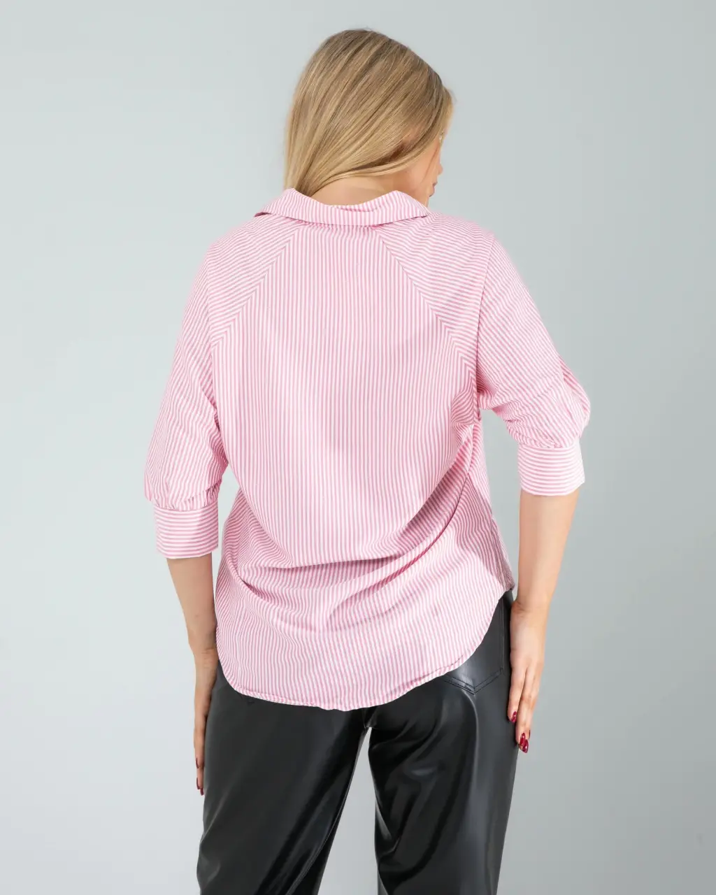 Yarım Düğme Pembe Çizgili Beyaz Gömlek