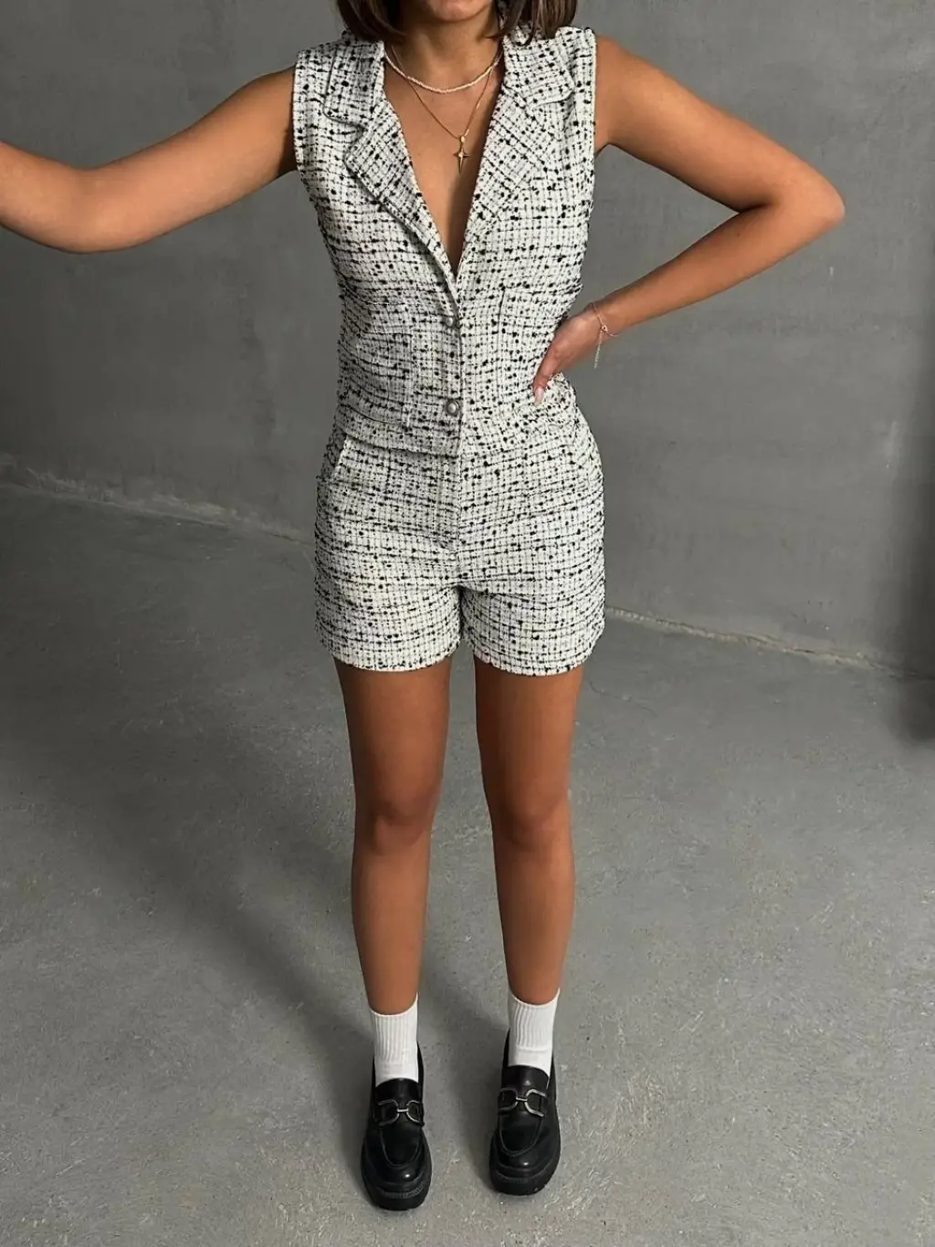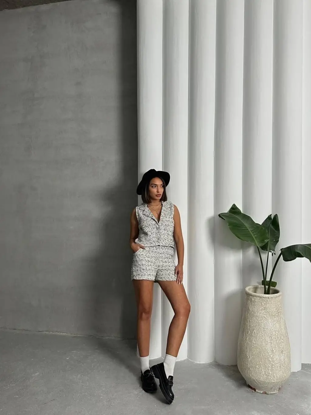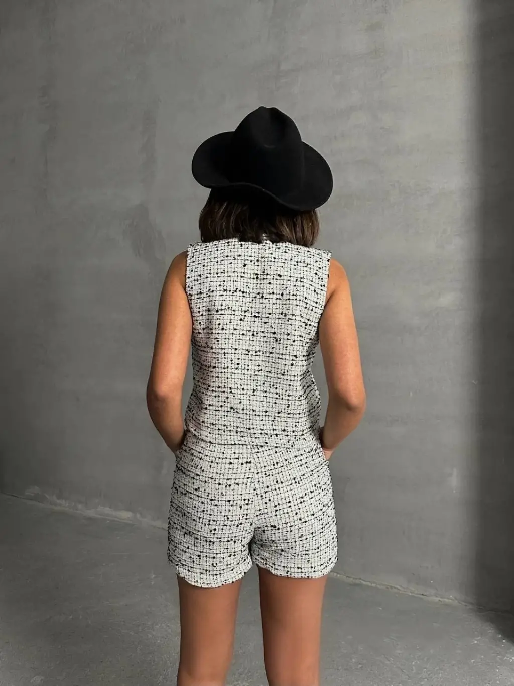 Kadın Düğme Ve Blise Detay Arkası Lastikli Takım