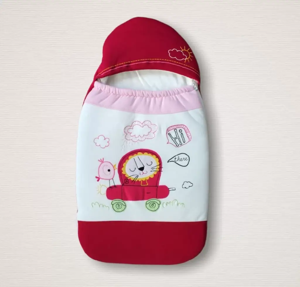 Yenidoğan Arabalı Aslan Nakışlı Fermuarlı Şapkalı Klasik Kundak Bebek Battaniyesi
