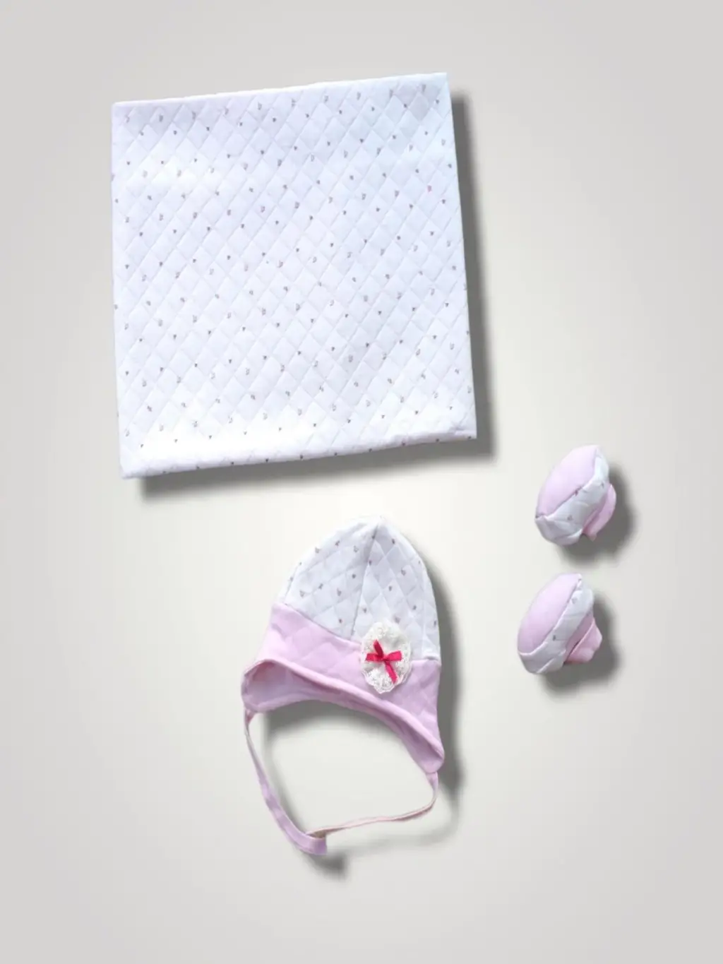 Yenidoğan Baskılı Double Face Şapka Ve Patikli 3lü Bebek Battaniye Takımı