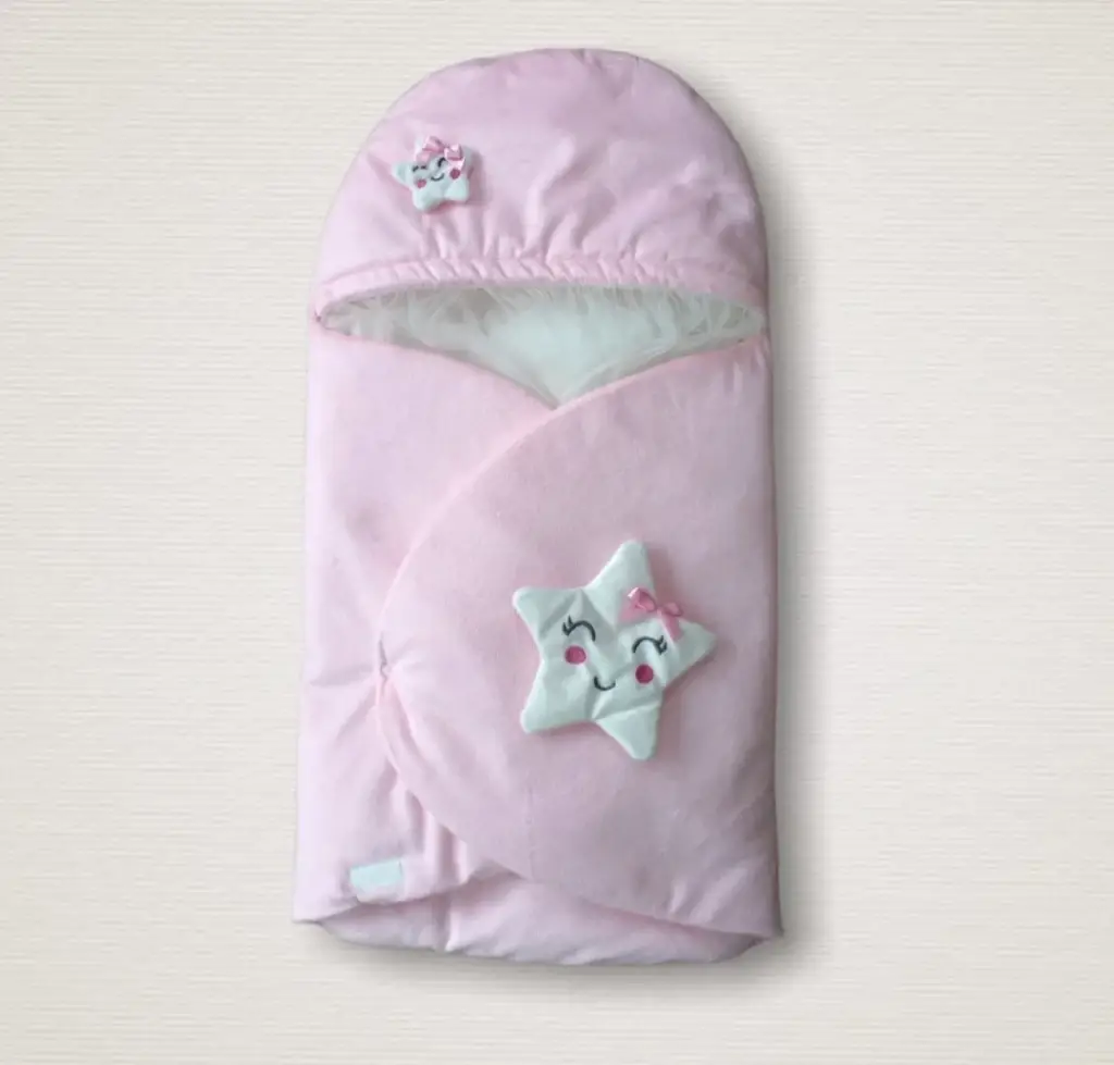 Göz Alıcı Çift Yıldız Detaylı Kız Bebek Kundak Battaniye