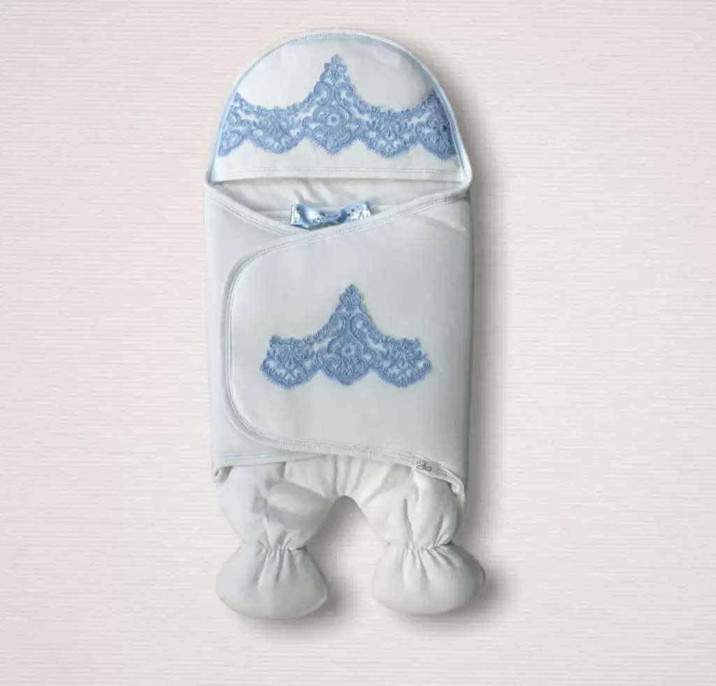 Omarı Lüks Yenidoğan Mavi Bebek Battaniyesi