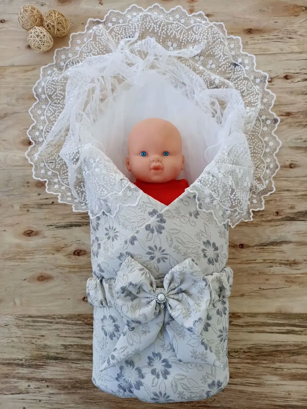Yenidoğan Gül Sedefli Duvaklı Taş Fiyonk Erkek Bebek Kumru Kundak Bebek Battaniyesi