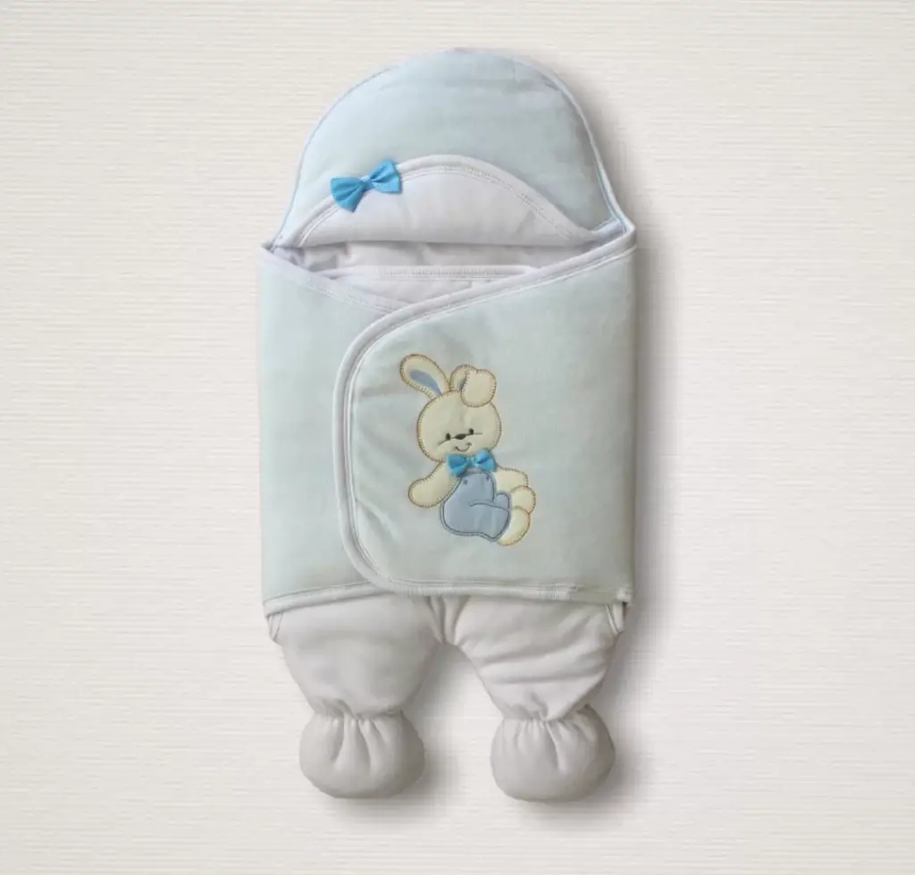 Yenidoğan Kadife Kumaş Ayıcık Nakışlı Şapkalı Kız Erkek Bebek Ayaklı Kundak Bebek Battaniyesi