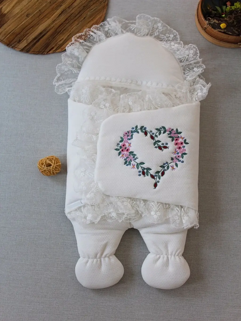 Yenidoğan Kapitone Anadolunun Kalbi Nakışlı Ayaklı Kız Erkek Bebek Battaniyesi