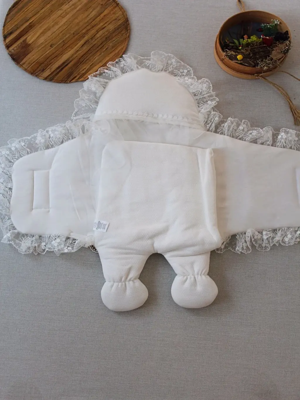 Omarı Ekru Renkli Yenidoğan Kapitone Battaniye