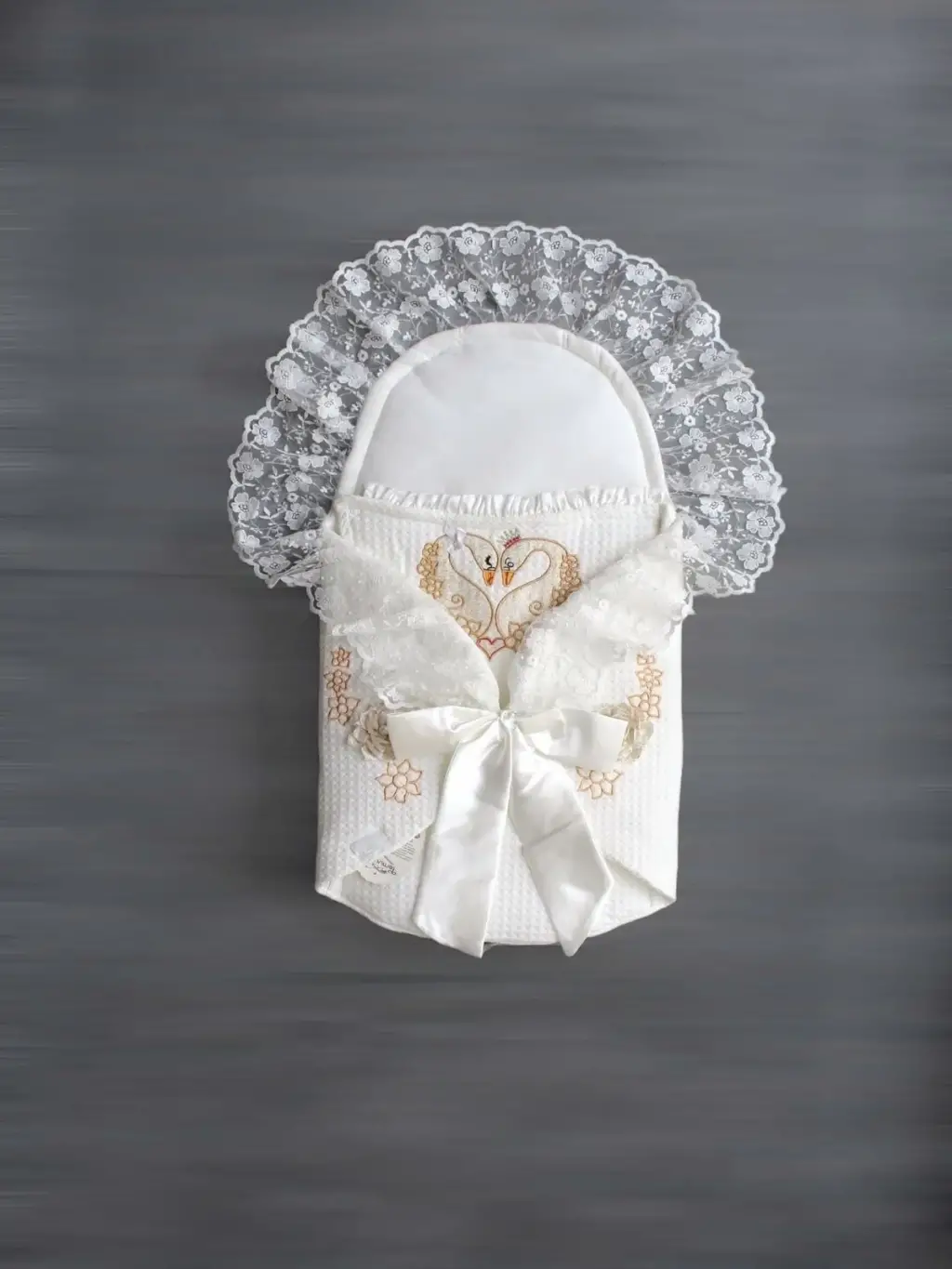 Yenidoğan Kuğu Nakışlı Avangard Kundak Bebek Battaniyesi