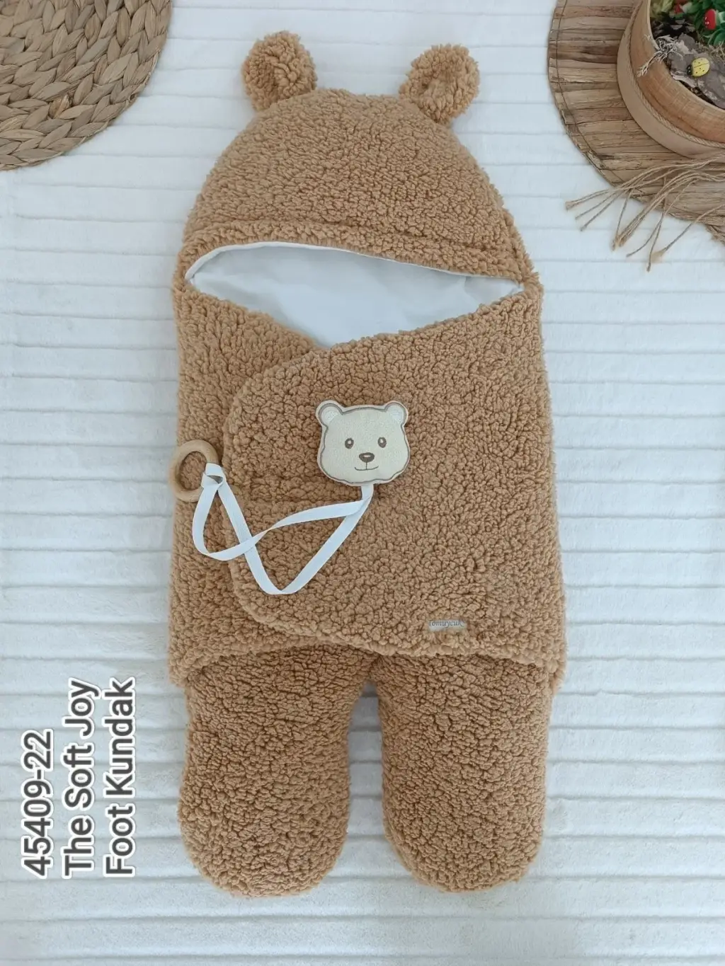 Yenidoğan Kulaklı Şapkalı Açılır Kucaklı Cırt Kapamalı Ayaklı Bebek Battaniyesi Kundak