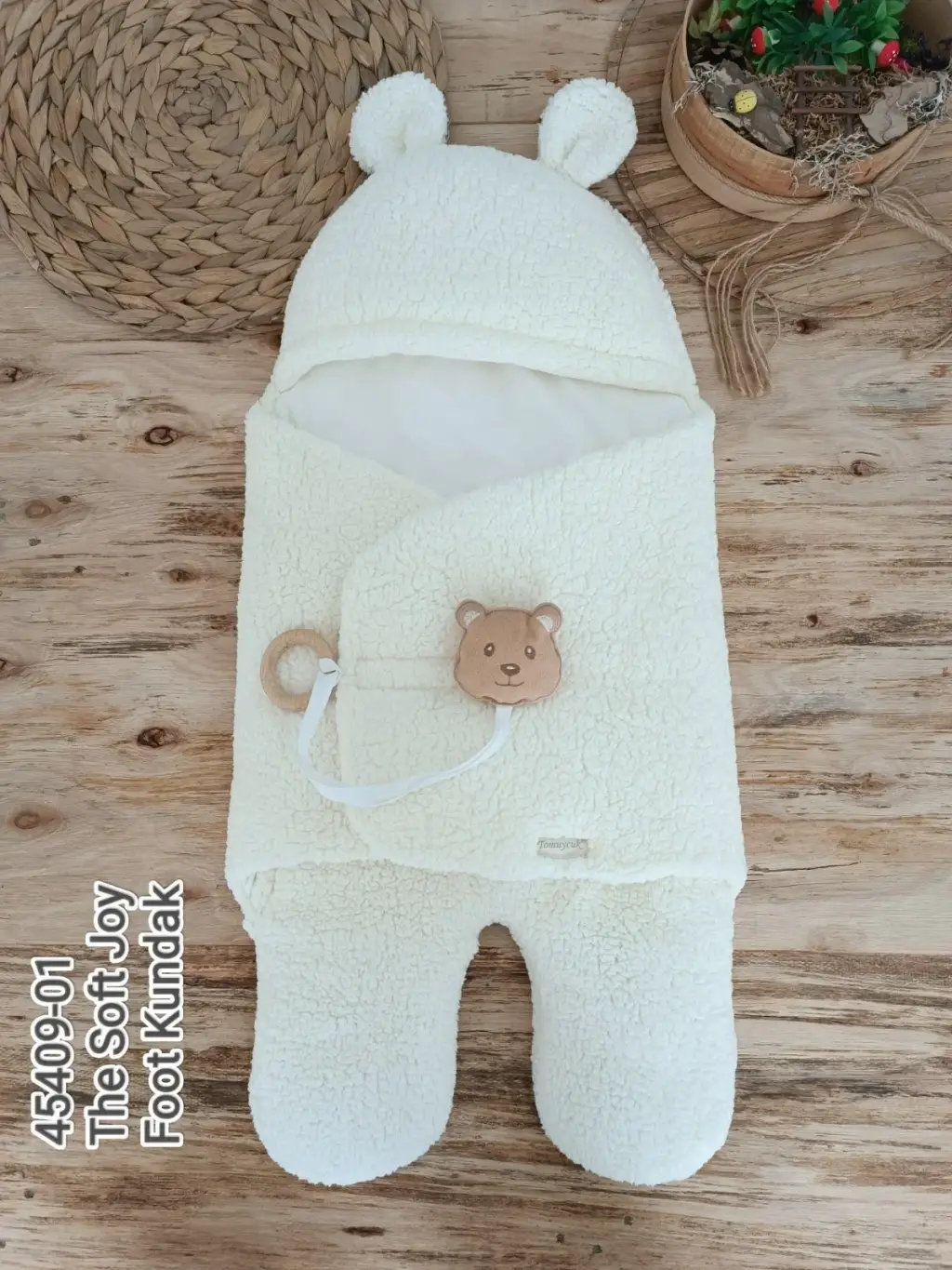 Yenidoğan Kulaklı Şapkalı Açılır Kucaklı Cırt Kapamalı Ayaklı Bebek Battaniyesi Kundak