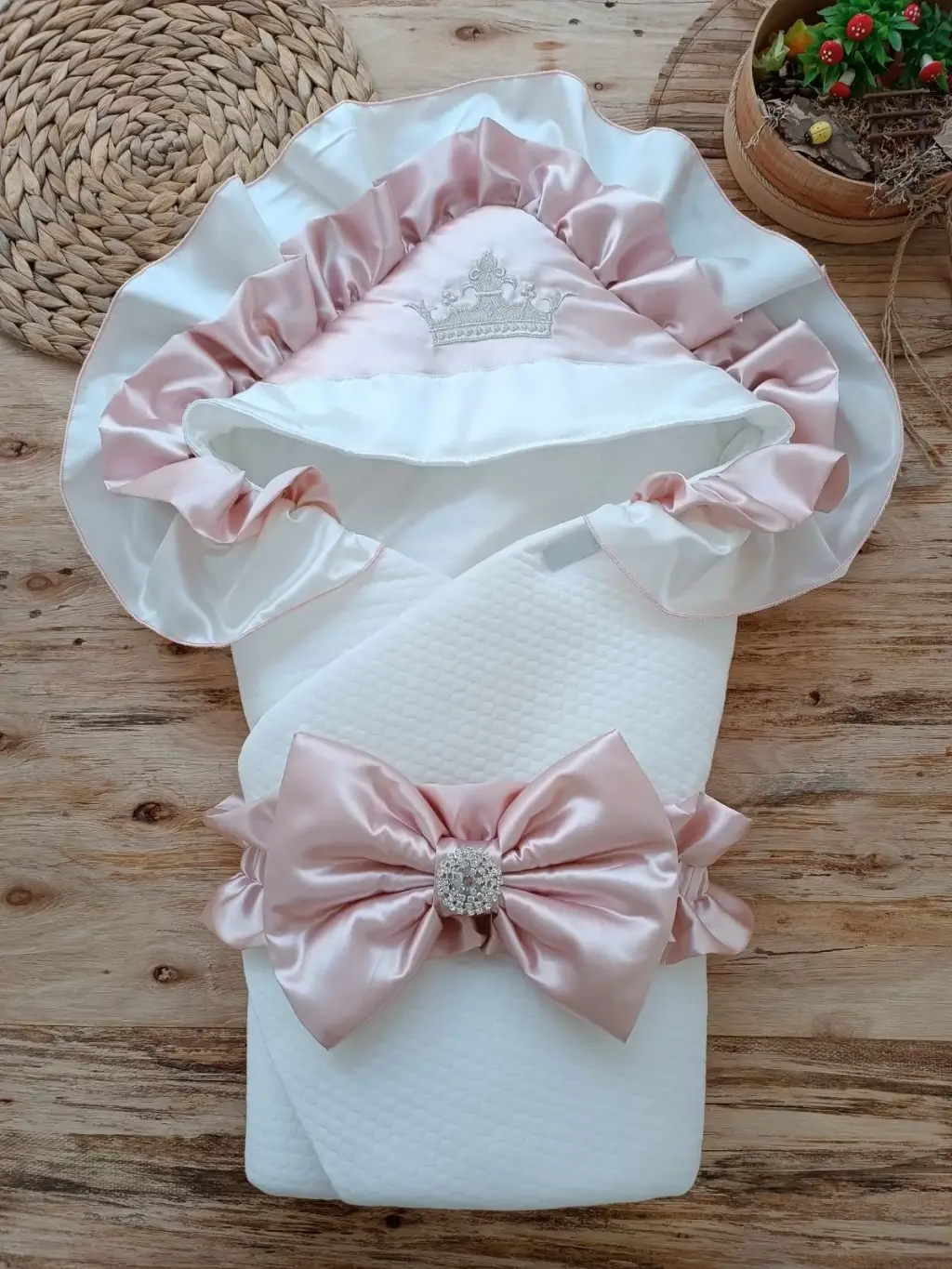 Yenidoğan Mehtap Lüks Kelebek Taç Nakışlı Bebek Battaniyesi Kundak