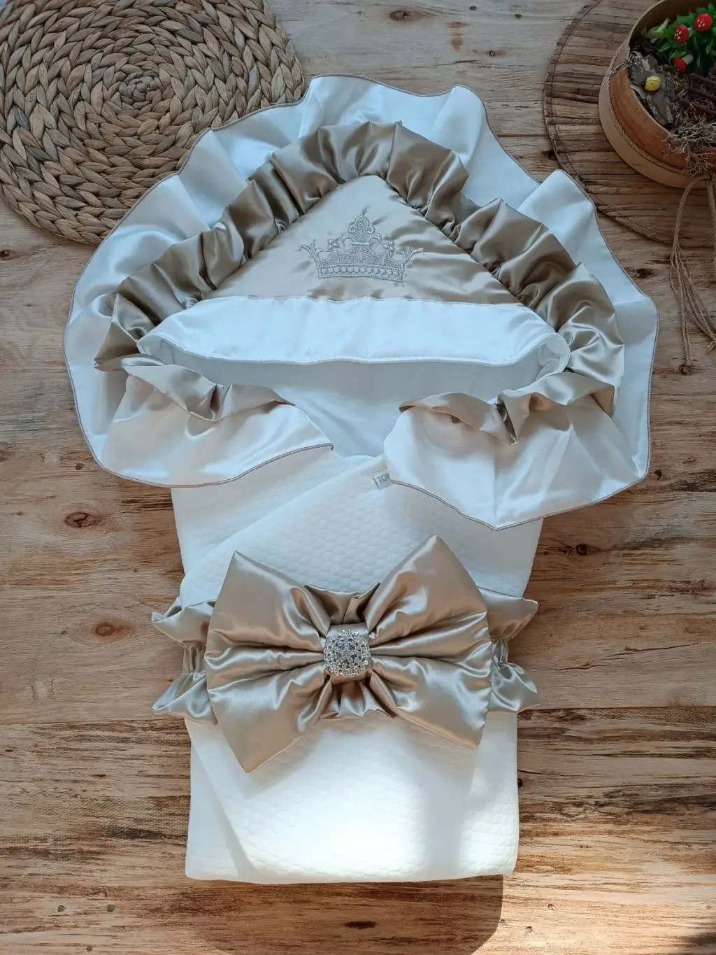 Yenidoğan Mehtap Lüks Kelebek Taç Nakışlı Bebek Battaniyesi Kundak