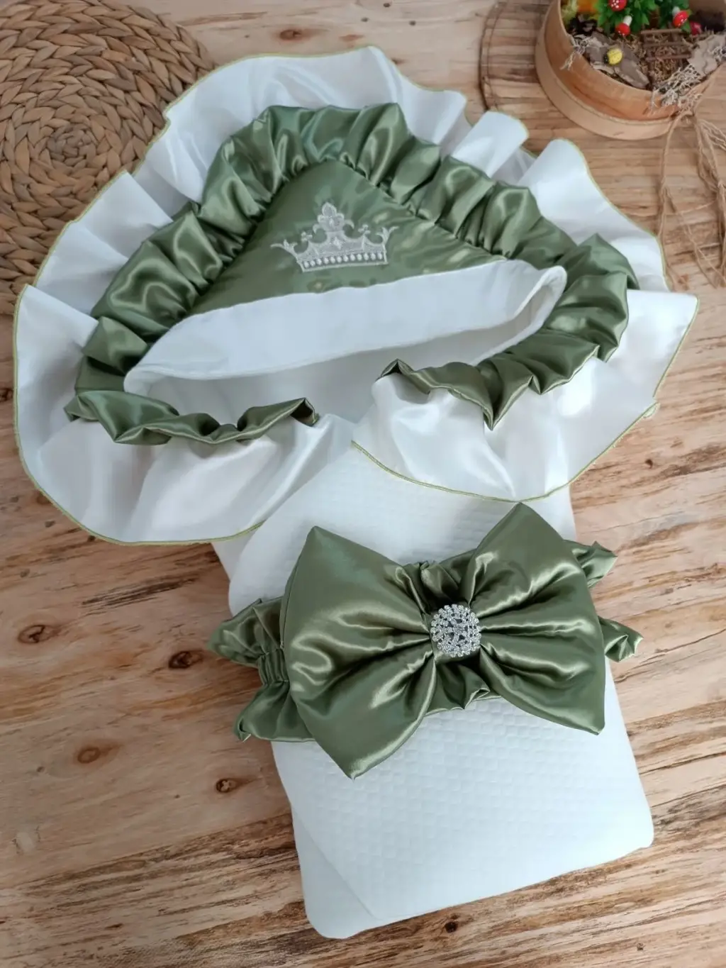 Etkileyici Kelebek Taç Nakışlı Bebek Battaniyesi Yeşil