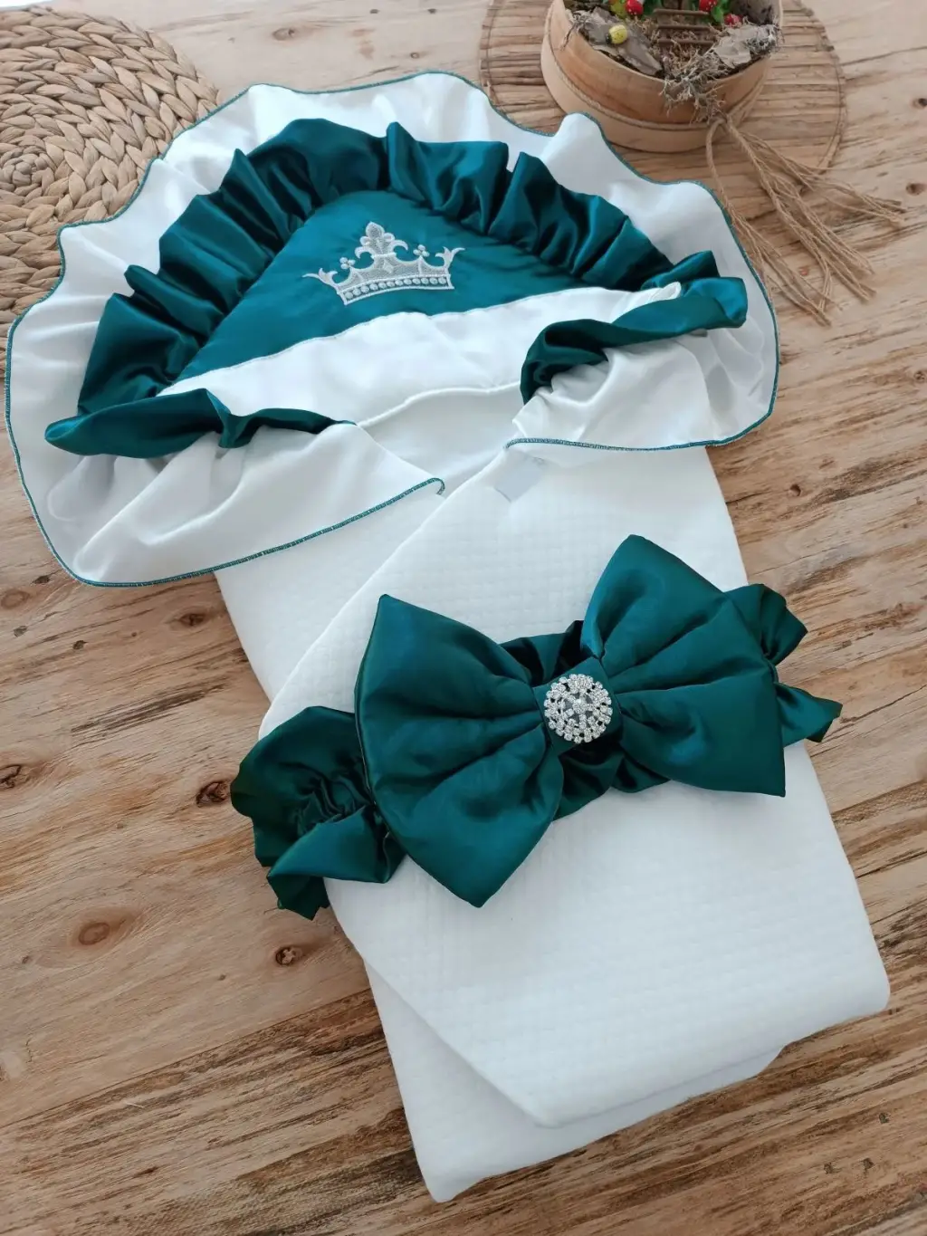 Omarı Yenidoğan Lüks Kelebek Taç Nakışlı Bebek Battaniyesi - Zümrüt Yeşili