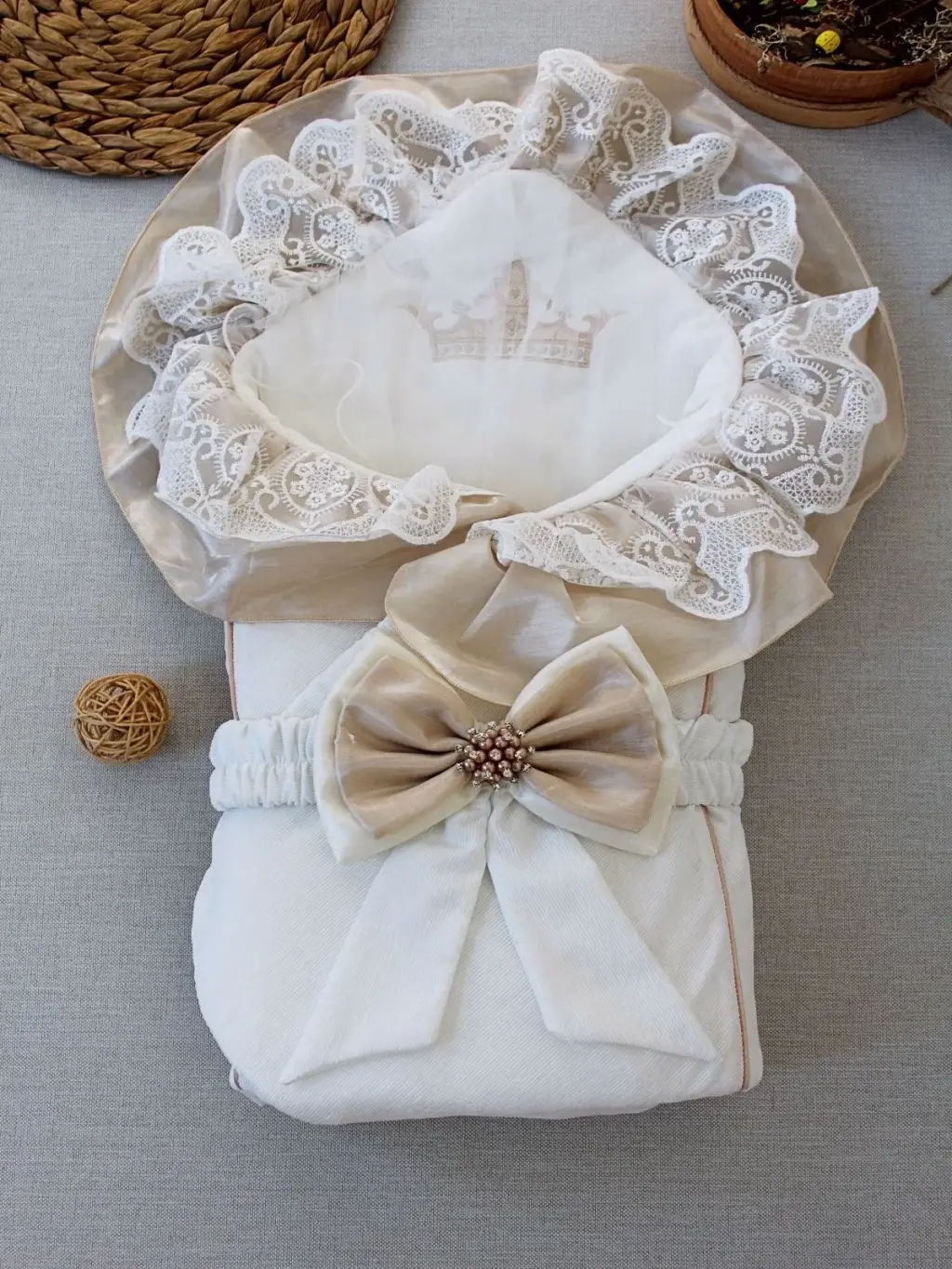 Yenidoğan Nil Taç Nakışlı Kumru Kundak Bebek Battaniyesi