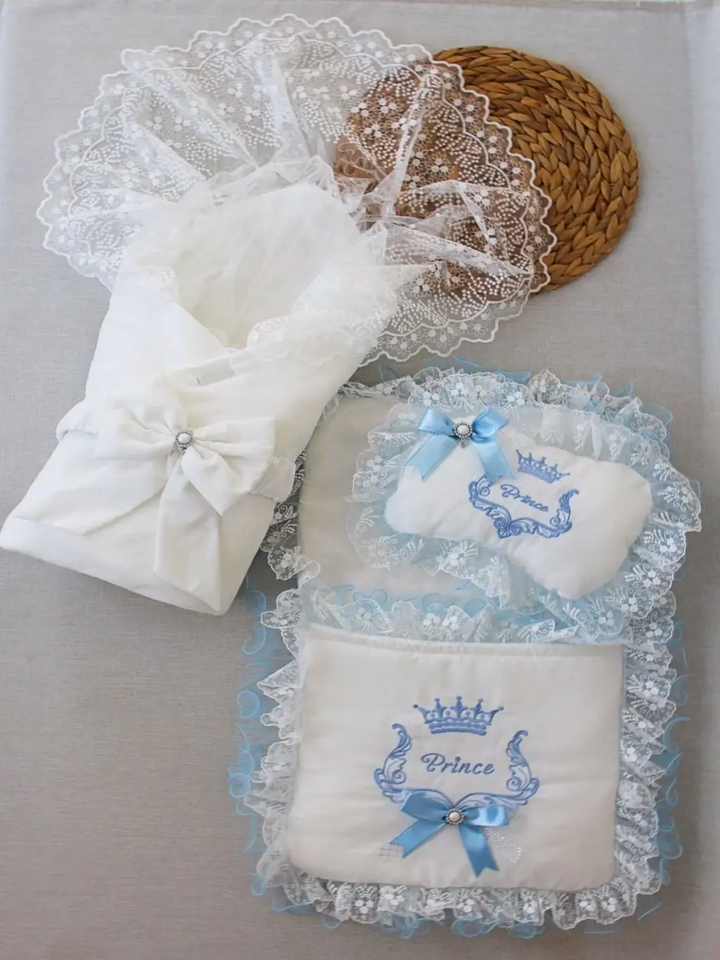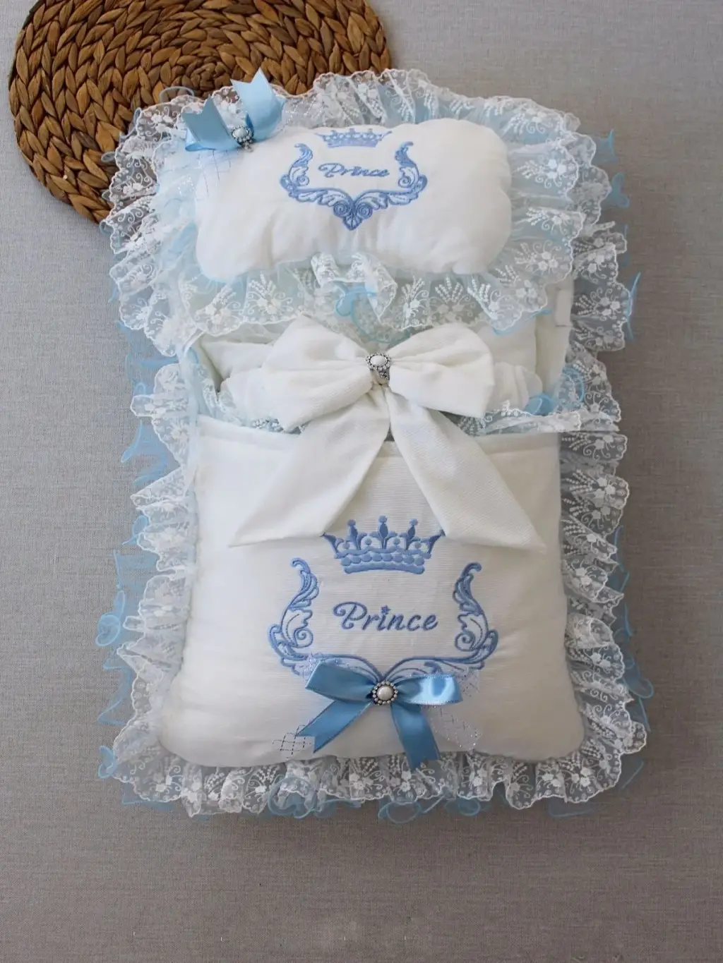 Yenidoğan Nil Taç Nakışlı Kundaklı Trilüks 3lü Alt Açma Seti