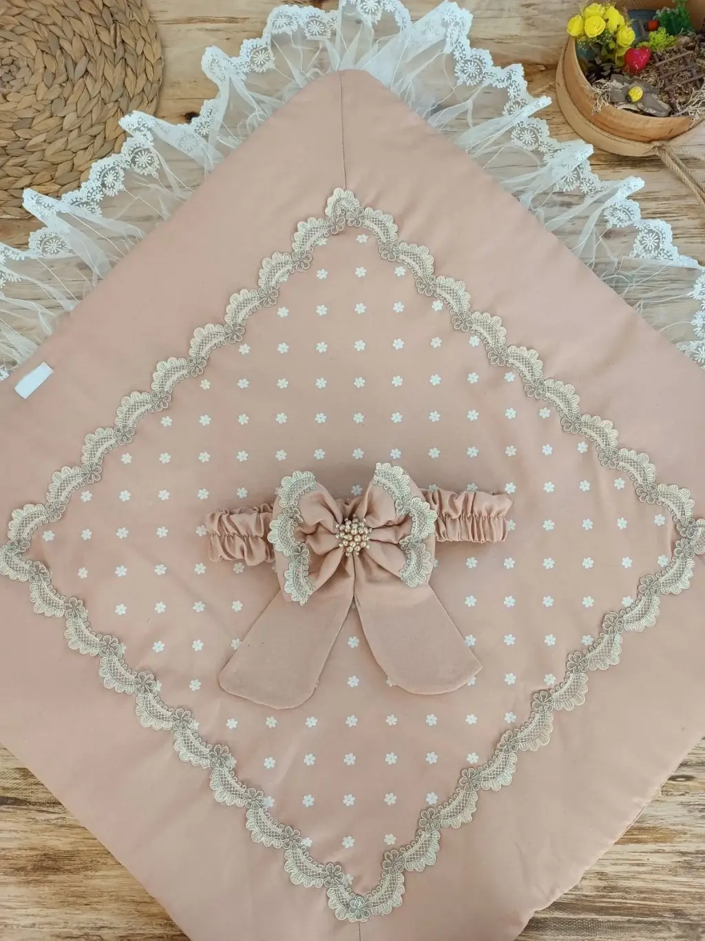 İddialı Piramit Desenli Güpür İşlemeli Bebek Battaniyesi