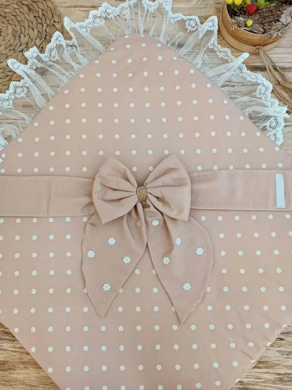 İddialı Piramit Desenli Güpür İşlemeli Bebek Battaniyesi