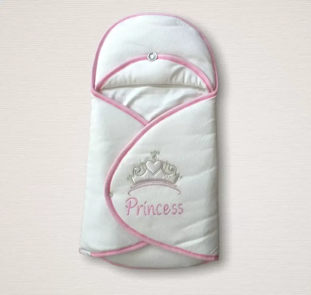 Yenidoğan Princess Nakışlı Çizgi Efektli Kız Bebek Klasik Kundak Bebek Battaniyesi