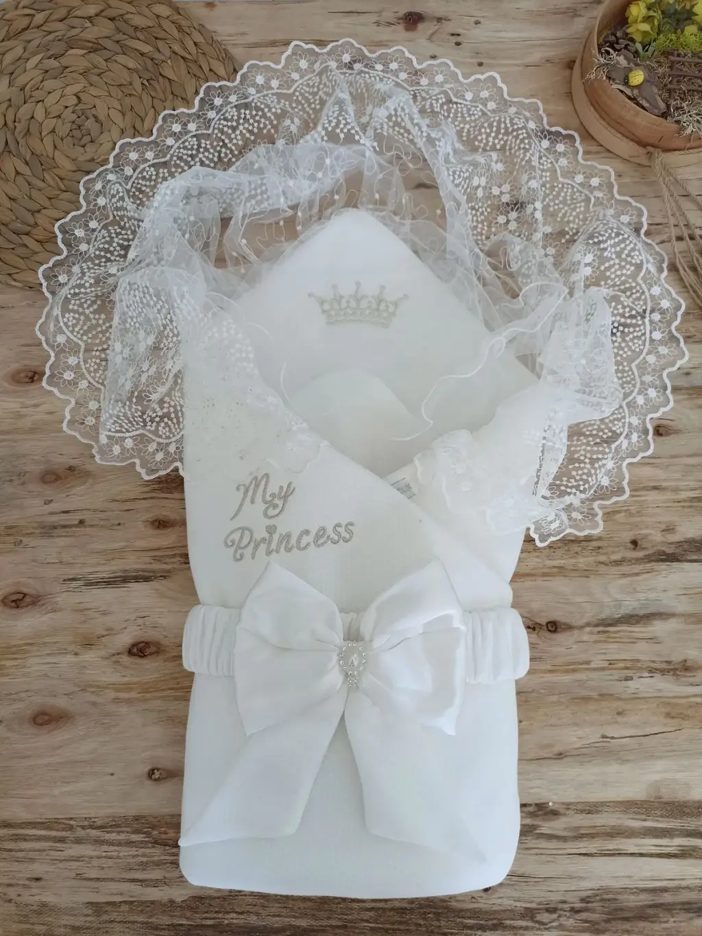 Yenidoğan Sahra Taç Benim Prensesim Nakışlı Kundak Bebek Battaniyesi