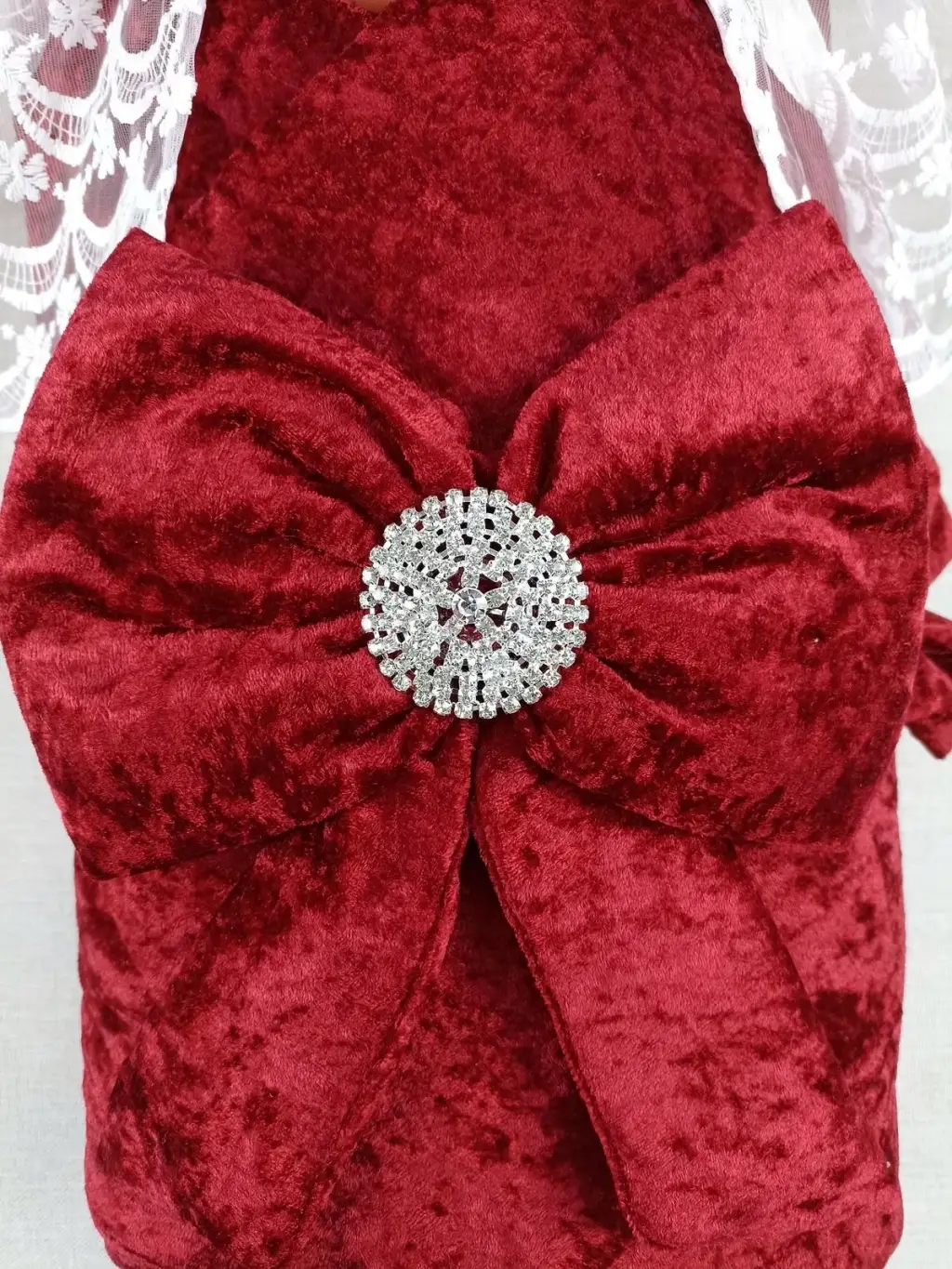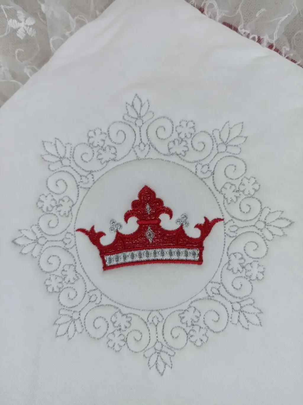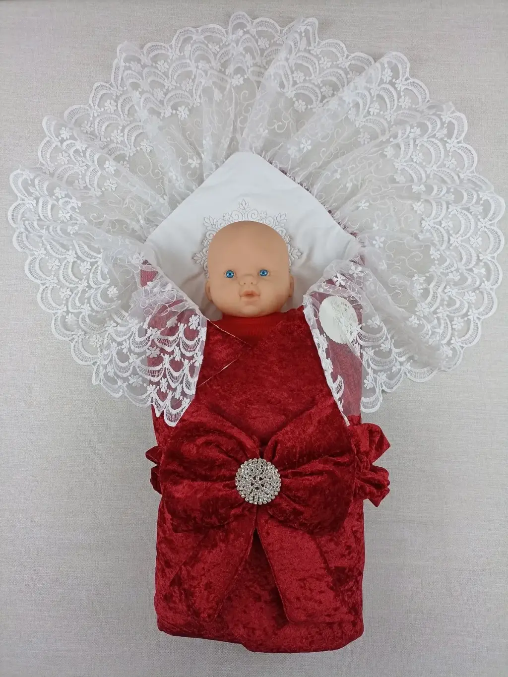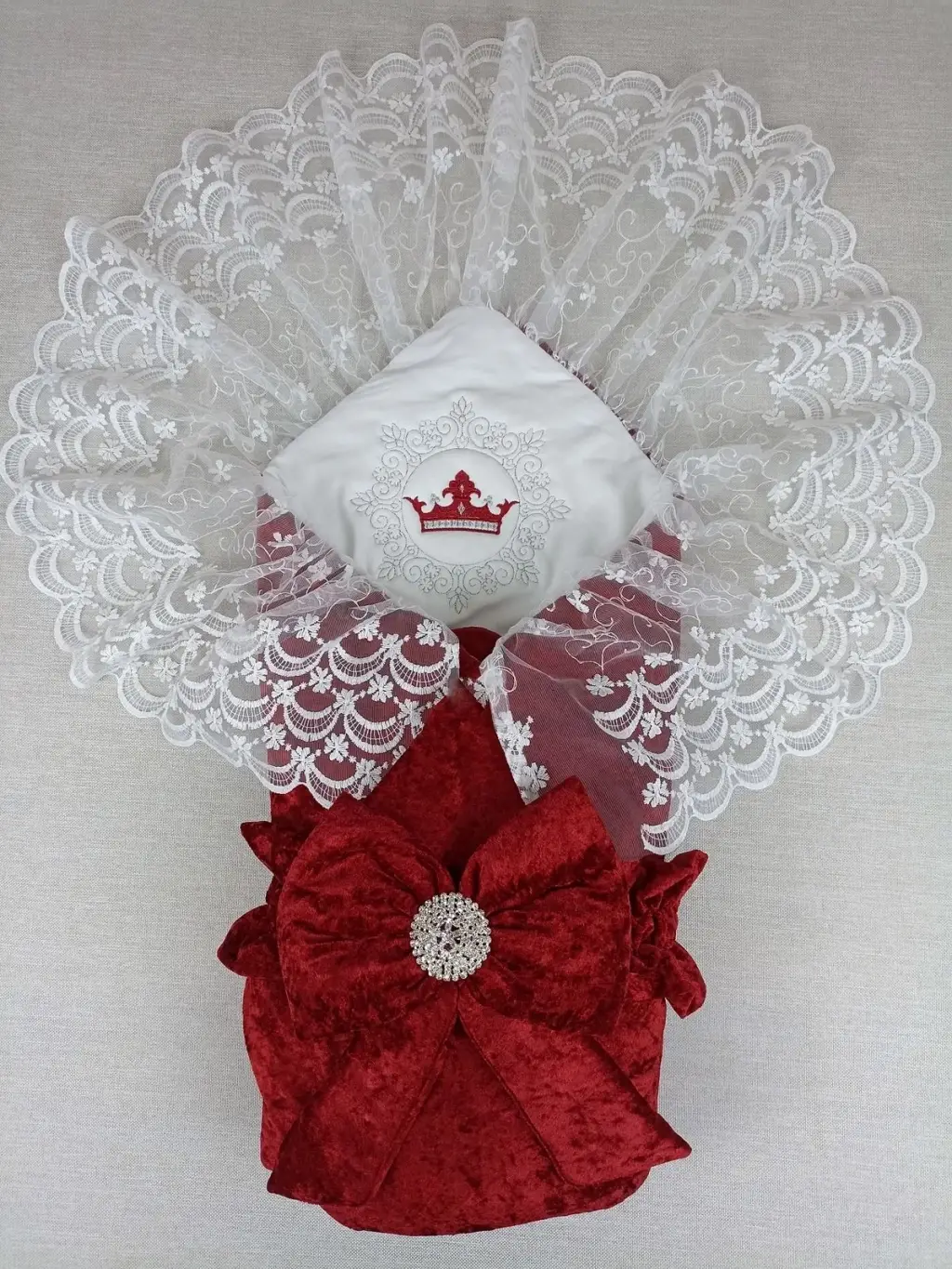 Yenidoğan Saray Kadife Taç Nakışlı İnci Fiyonklu Dantel Duvak Trilüks Kundak Bebek Battaniye