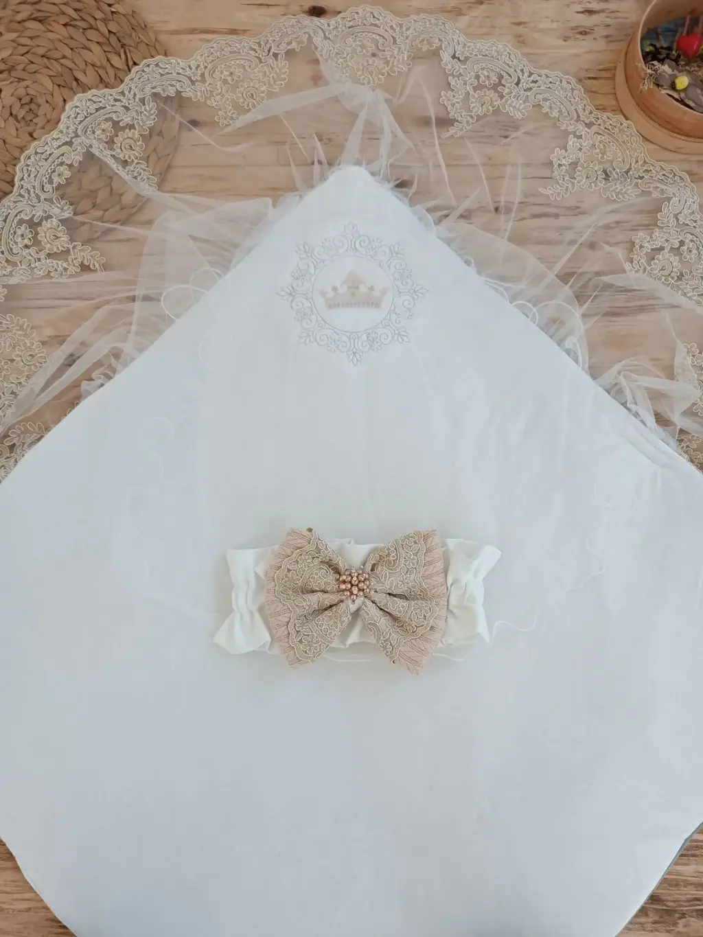 Yenidoğan Teri Cotton Taç Nakışlı Prizma Taş Kundak Bebek Battaniyesi