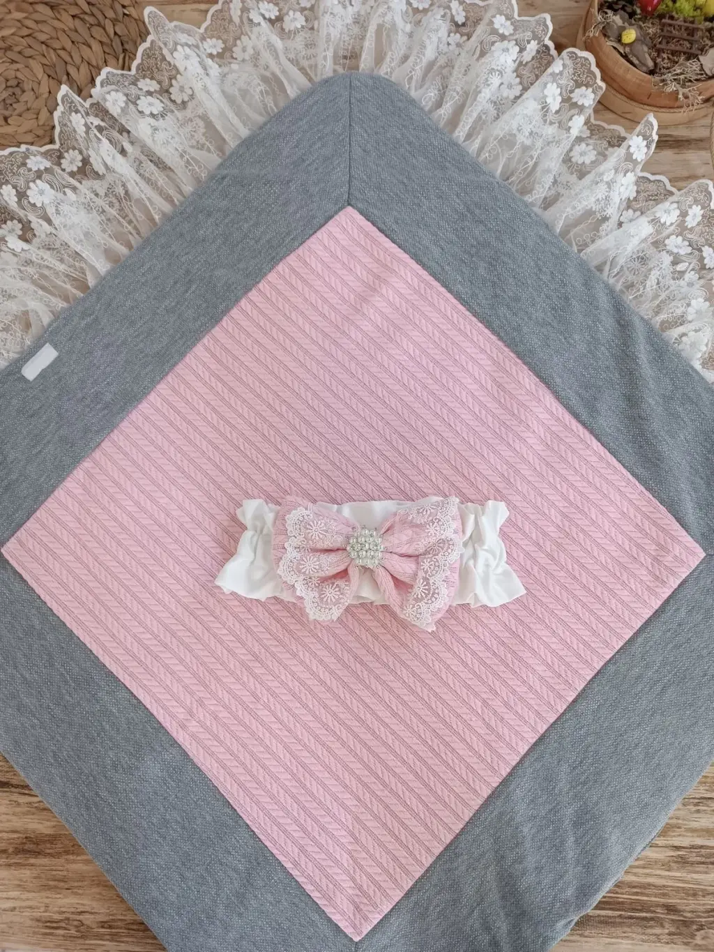 İddialı Piramit Desenli Güpür İşlemeli Bebek Battaniyesi