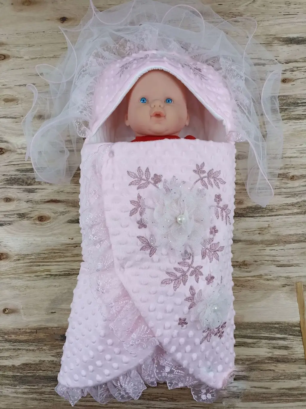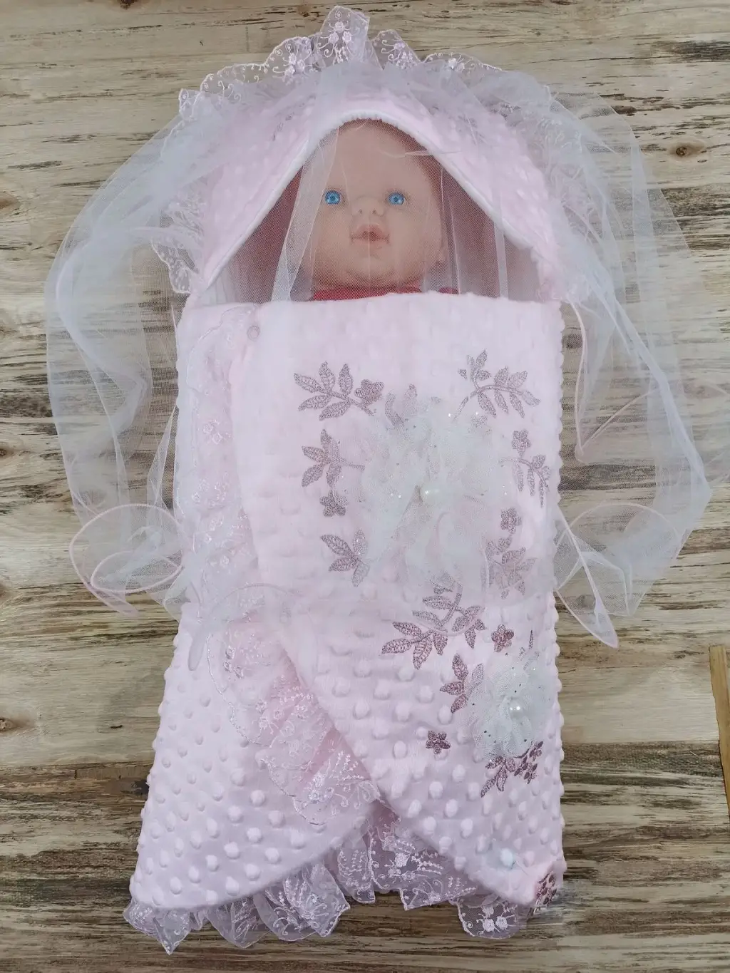 Yenidoğan Topçikli Gül Bahçesi Tül Örtülü Kız Erkek Bebek Klasik Kundak Bebek Battaniyesi