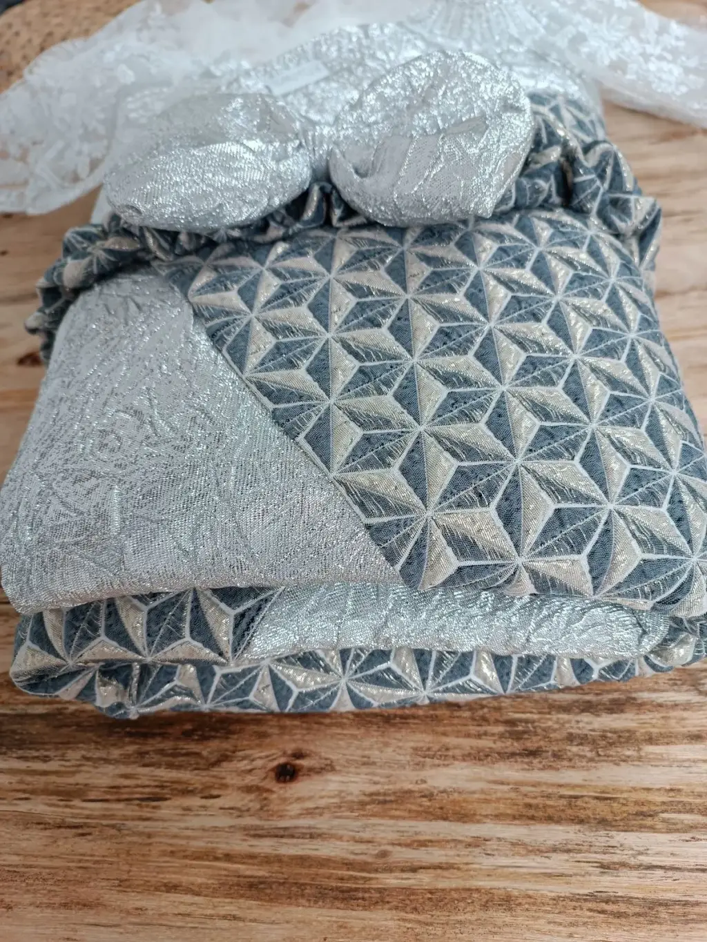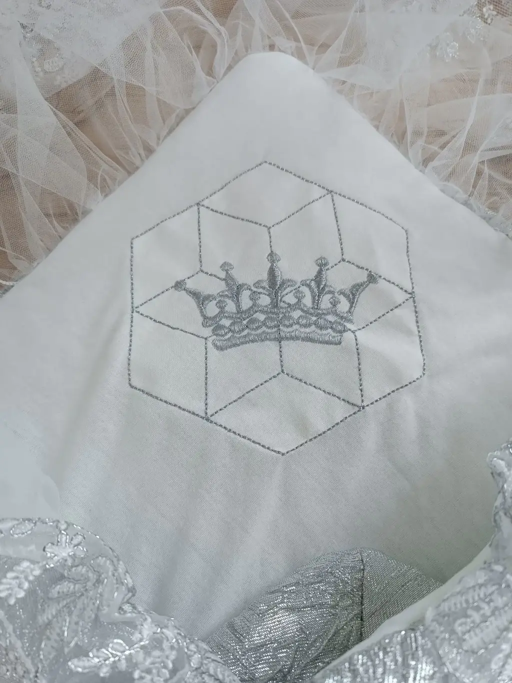 İddialı Piramit Desenli Güpür İşlemeli Bebek Battaniyesi