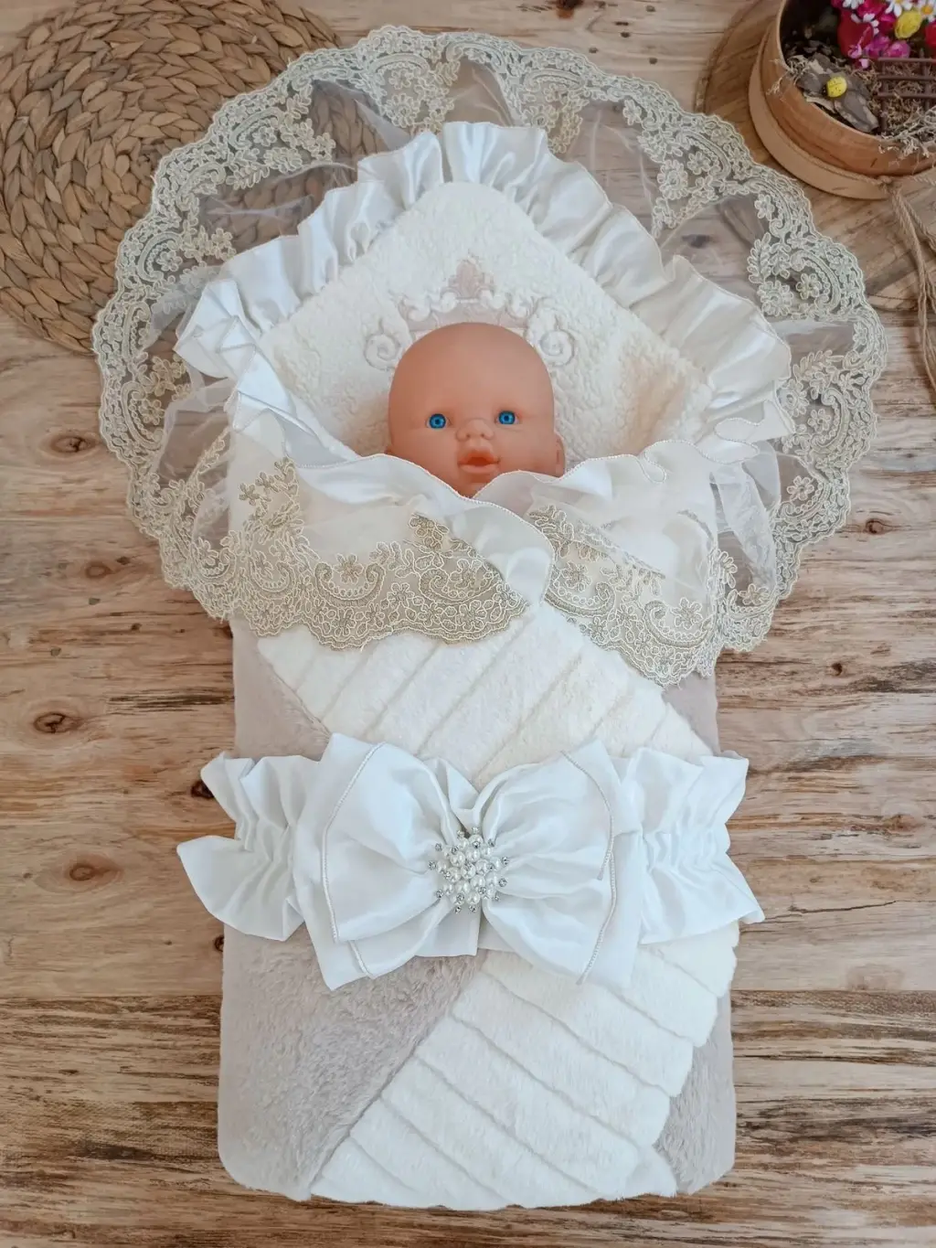 Zarif Yenidoğan Güpür Duvaklı Unisex Kundak Bebek Battaniyesi