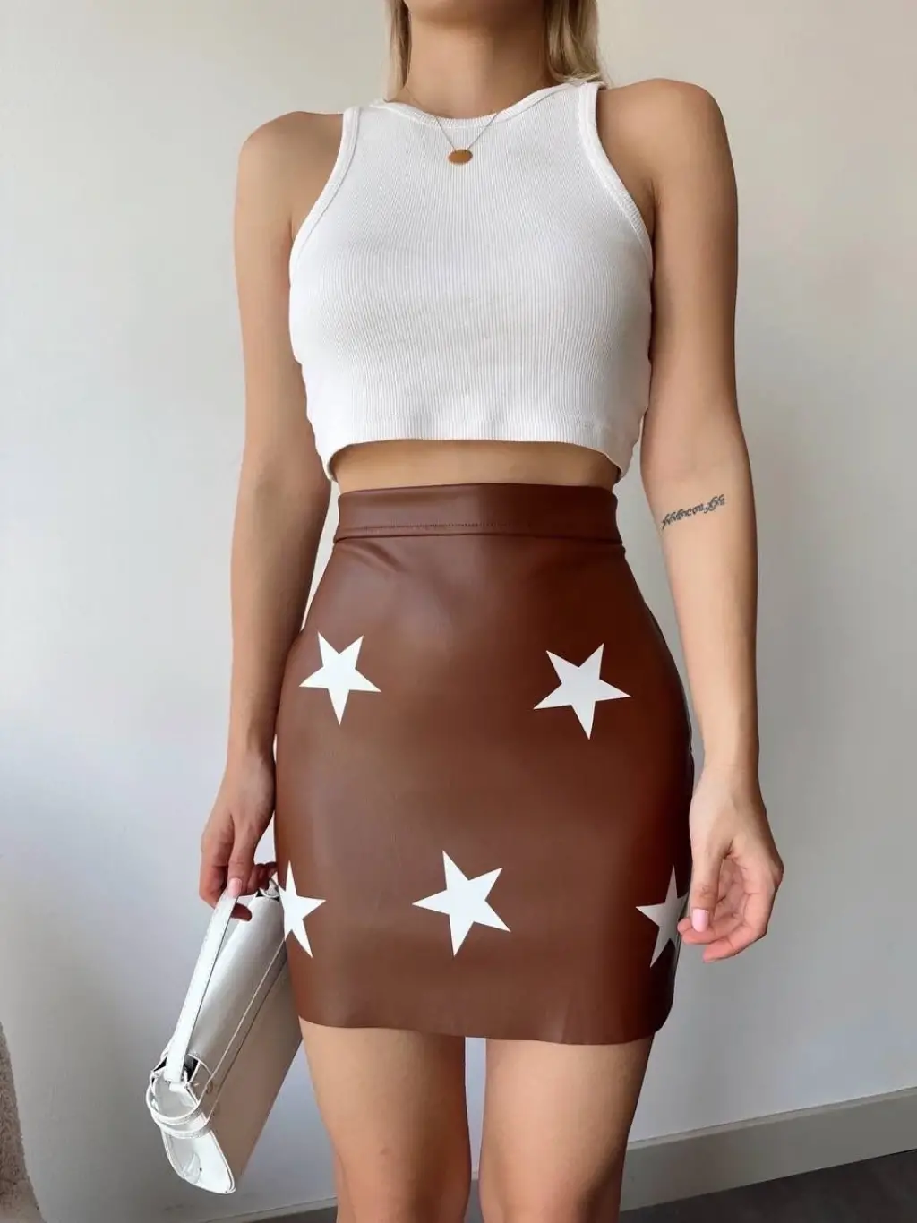 Bu şık ve trend yıldız baskılı deri etek, gardırobunuza yıldızı bir parça ekleyecek! Modern ve şık tasarımıyla her kombini mükemmel bir şekilde tamamlayacak.