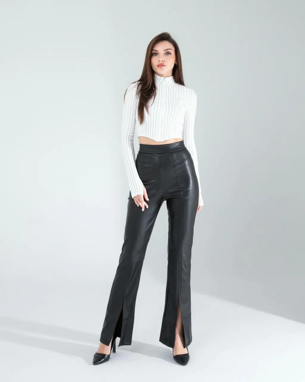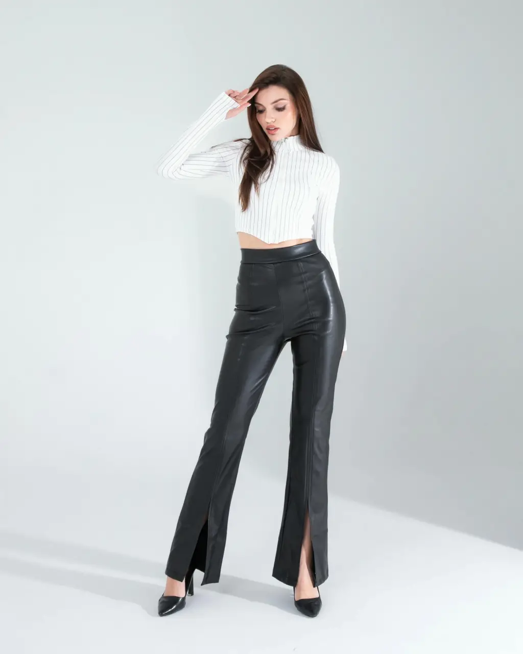 Şıklığınızı ve tarzınızı ortaya koymak için mükemmel bir seçim olan yırtmaçlı deri pantolon ile tanışın! Bu modern ve çekici pantolon, moda trendlerini yakalayarak gardırobunuza sofistike bir dokunuş getirir. Yüksek kaliteli deri malzemeler kullanılarak üretilmiş olan bu pantolon, hem rahatlık hem de şıklık sunar. Günlük kombinlerinizde veya özel davetlerde rahatça tercih edebileceğiniz bu deri pantolon, zarif yırtmaç detayları ile dikkat çeker. Zamansız tasarımı ve çarpıcı görünümü sayesinde her mevsim rahatlıkla giyebileceğiniz bu pantolon, stilinizi tam anlamıyla yansıtmanıza yardımcı olacak.