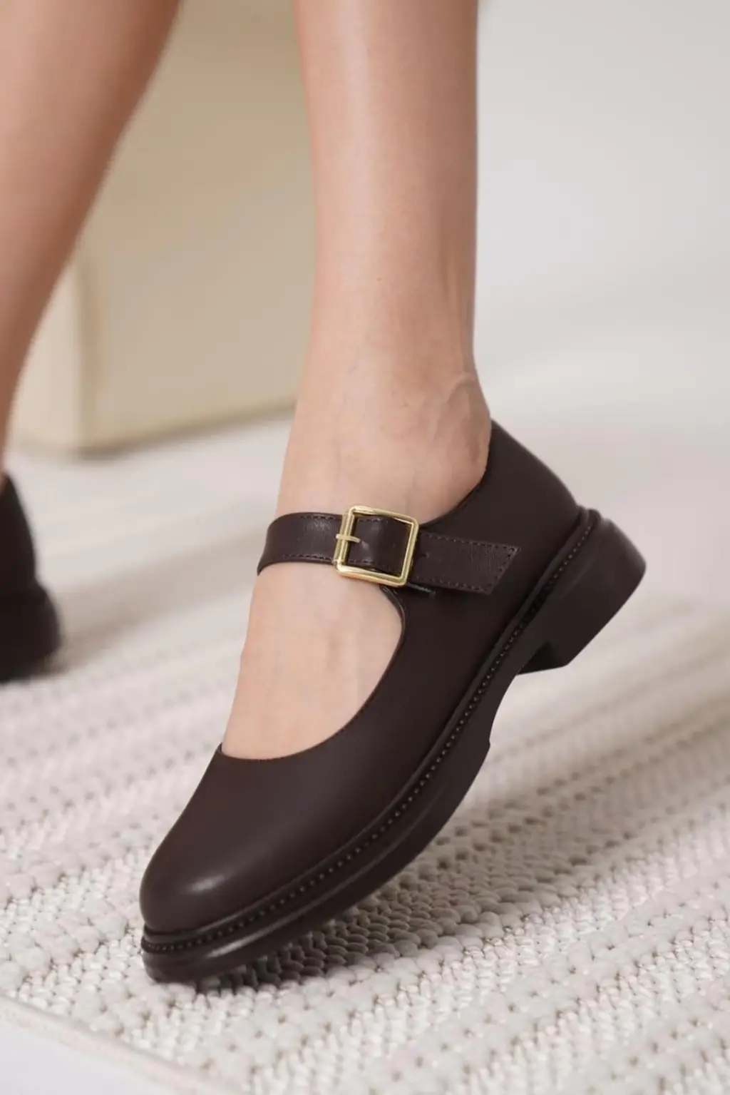 Omarı Deri Oxford Ayakkabı Kahverengi Dokunuşla