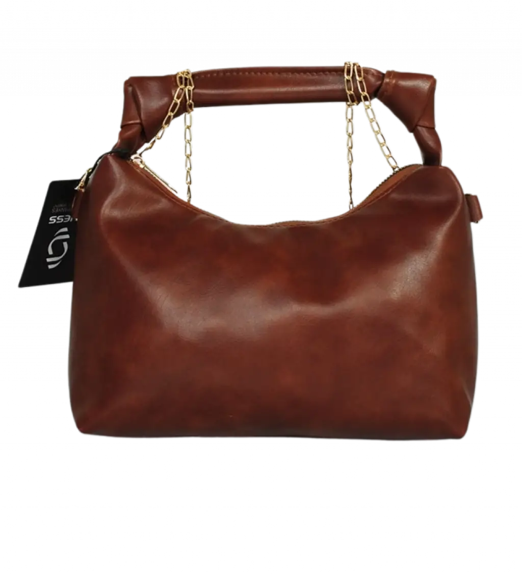 Zincir ve Düğüm Detaylı Deri Çanta - Kahverengi