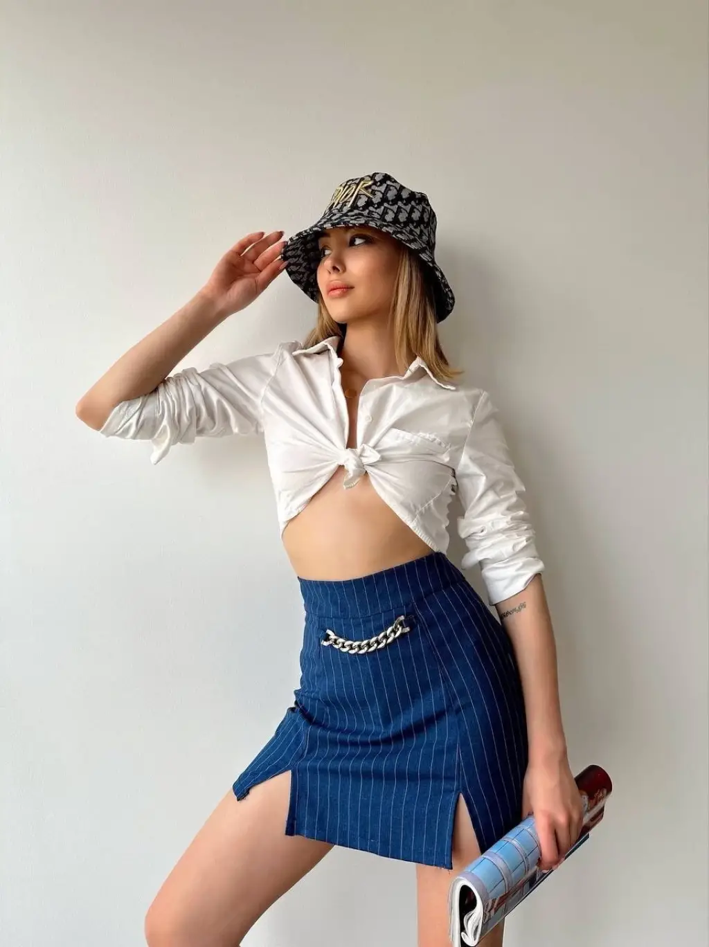 • Bel kısmında bulunan detaylı zincir ile dikkat çeker.